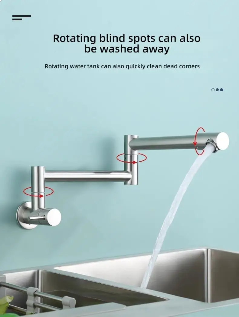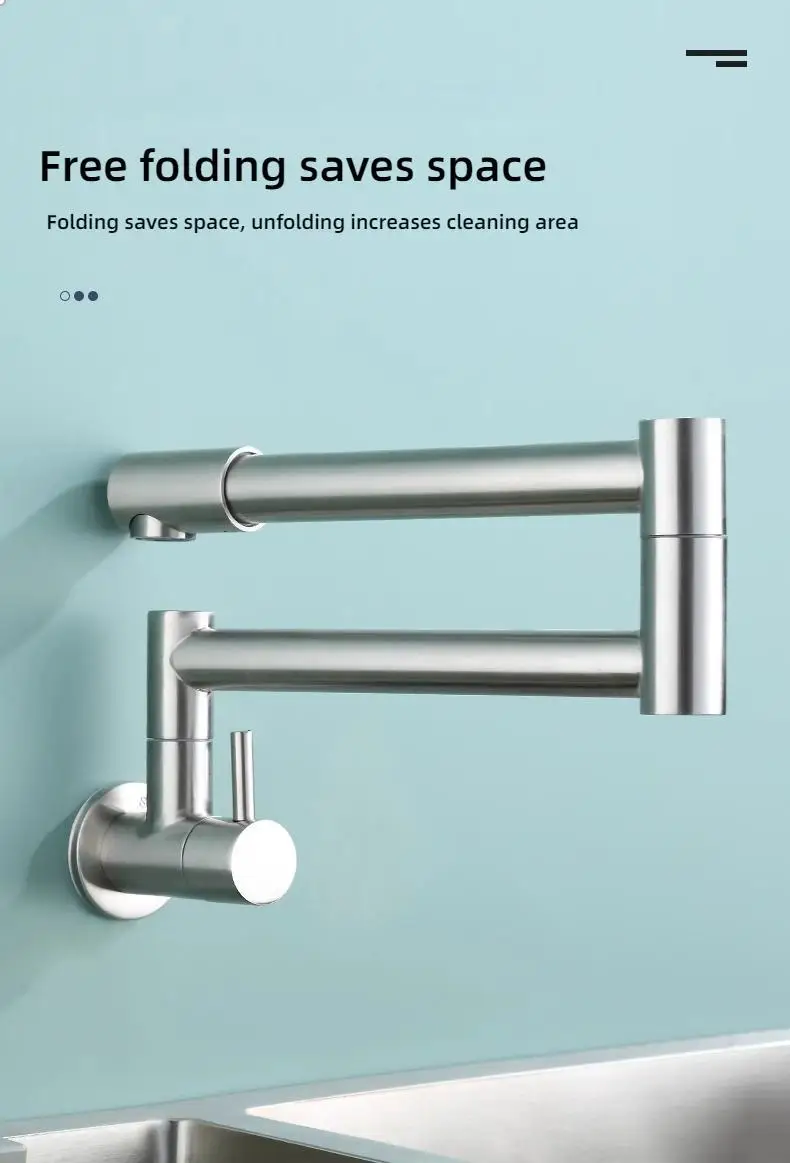 Robinet de cuisine pliable mural, robinet d’évier froid simple en acier inoxydable 304, bec rotatif à 360 degrés, robinet de cuisine dissimulé