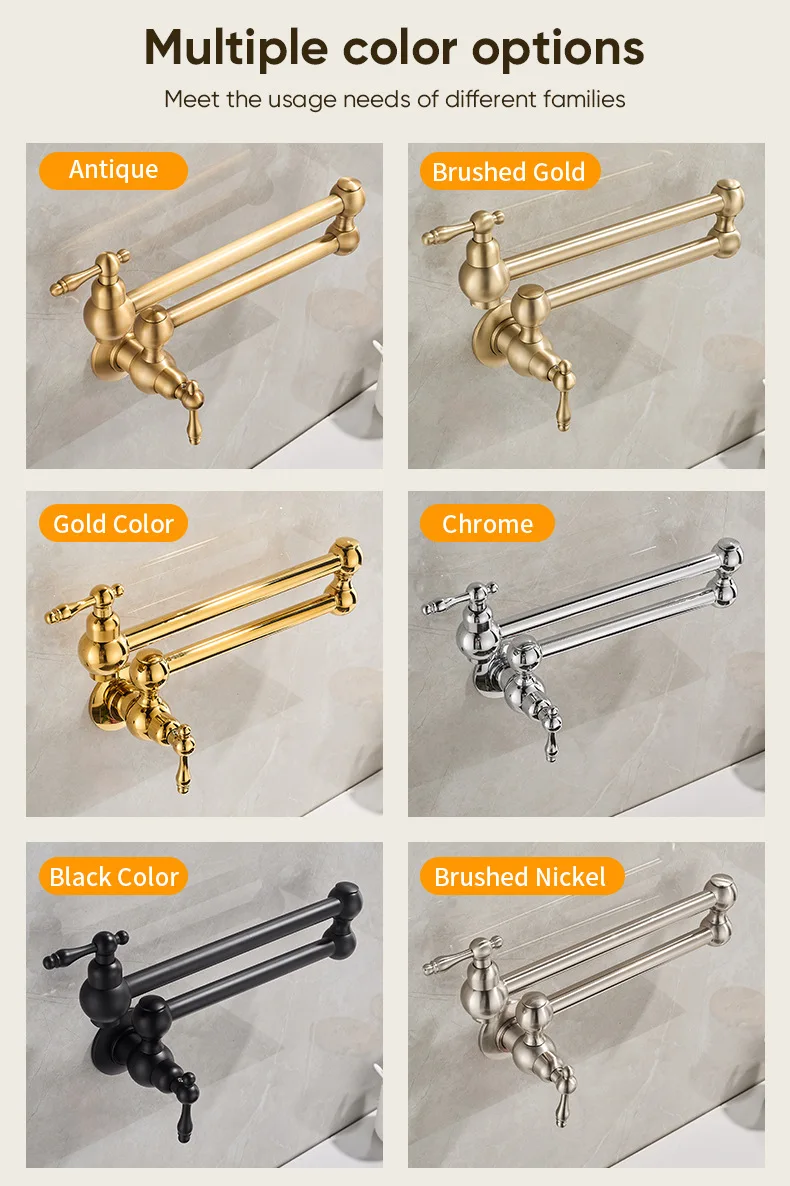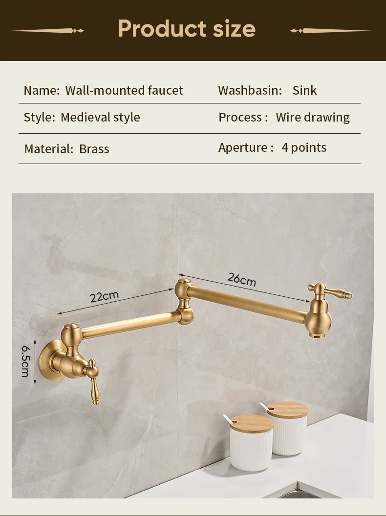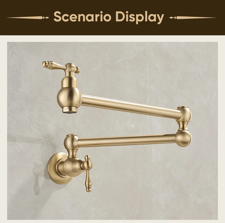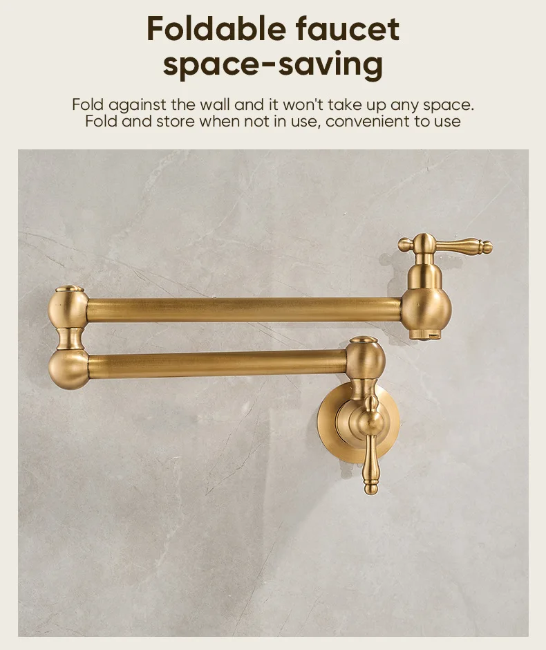 Robinet de cuisine pliant en laiton massif, robinet d'eau froide simple, robinet de cuisine mural avec portée étendue, pivotant à 360 degrés |
