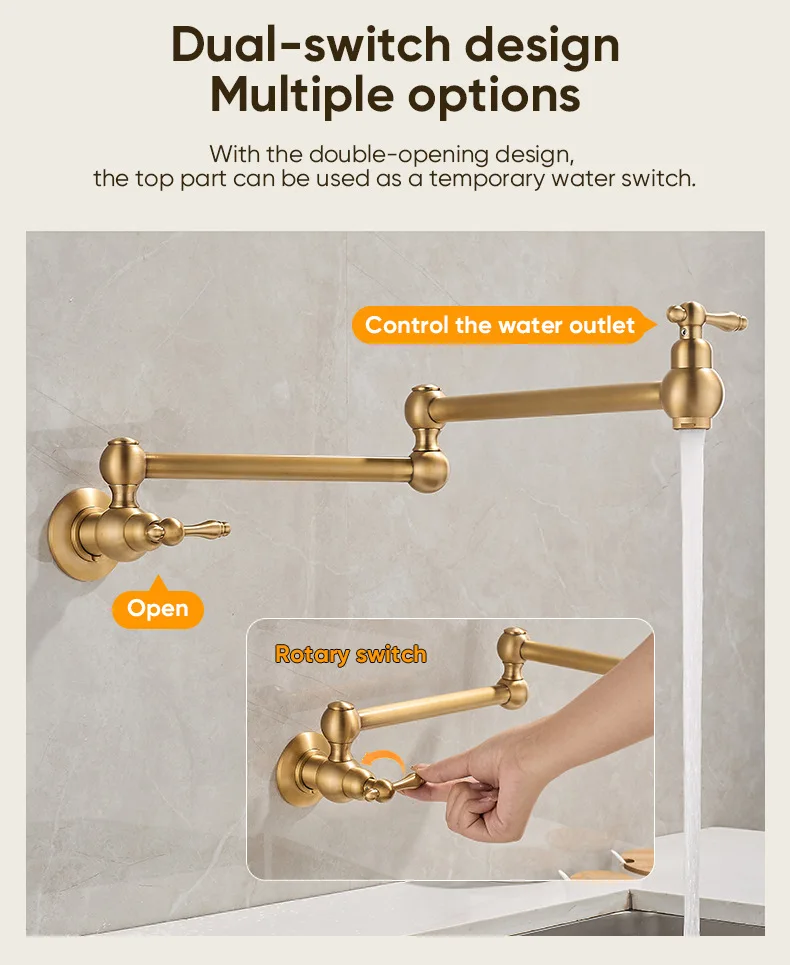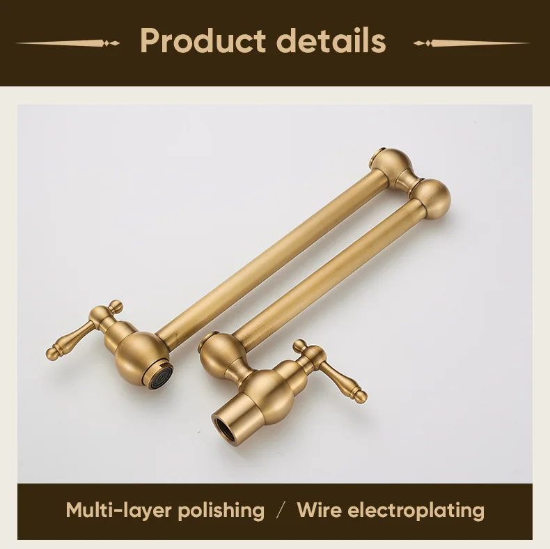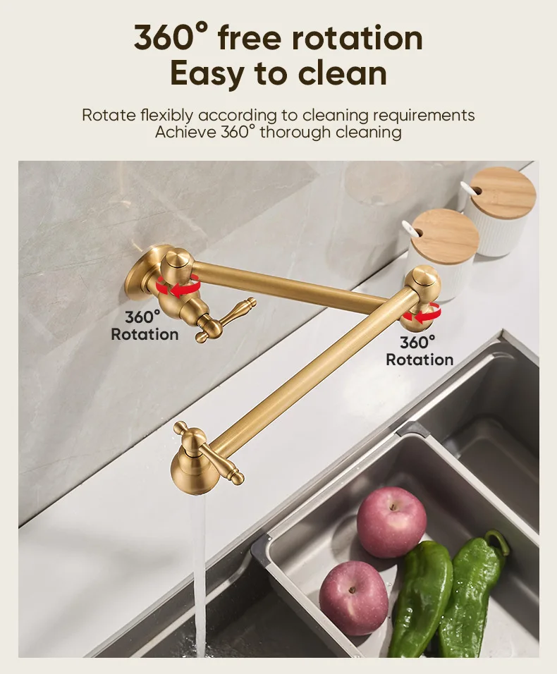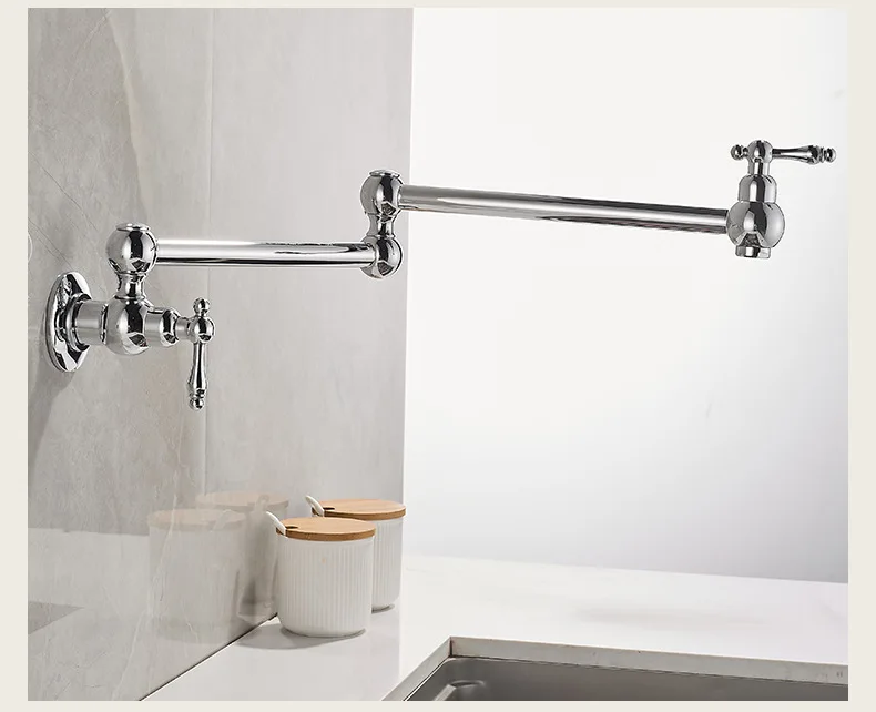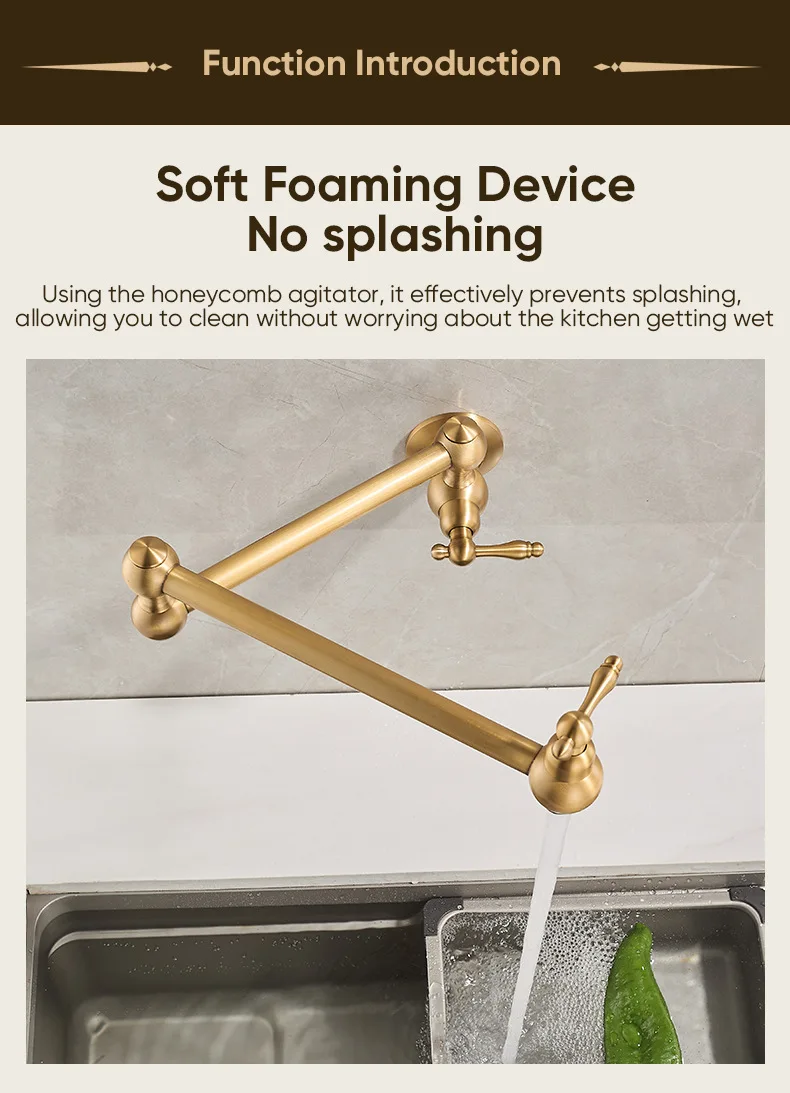Robinet de cuisine pliant en laiton massif, robinet d'eau froide simple, robinet de cuisine mural avec portée étendue, pivotant à 360 degrés |