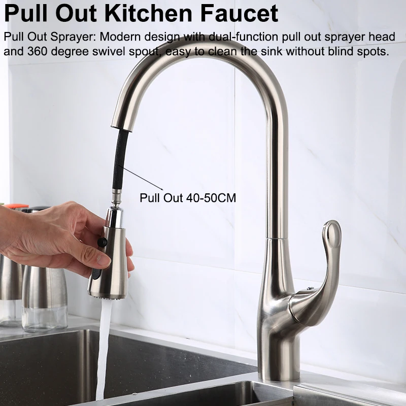☛ PULL OUT SPRAYER : pulvérisateur et buse rotatifs à 360 degrés, buse rotative à arc élevé à 360 degrés peut fournir un lavage complet pour votre évier de cuisine, un robinet à poignée unique peut contrôler la température et le débit plus pratique. Le robinet d’évier utilitaire facilite diverses tâches d’espace dans la cuisine.