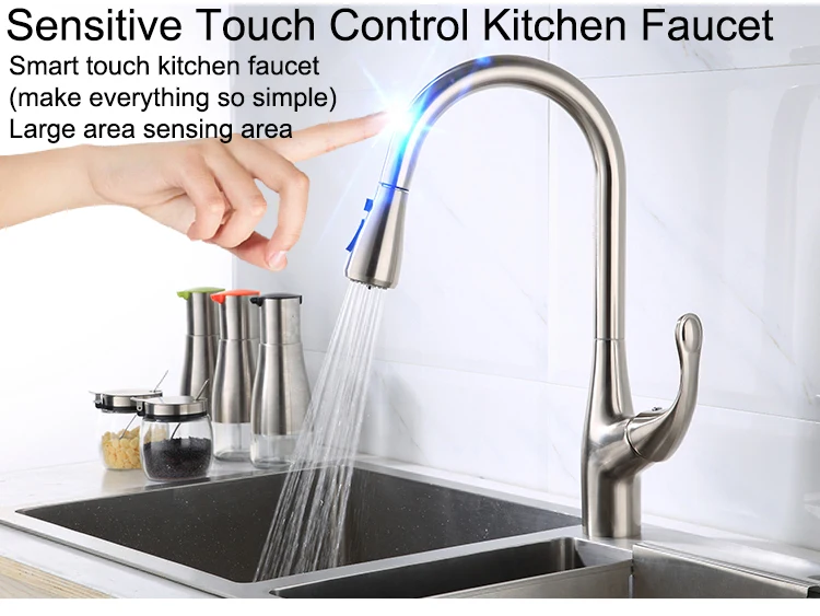 Robinet de cuisine tactile en Nickel brossé, en laiton de qualité, mitigeur d’évier de cuisine extractible chaud et froid, robinets de cuisine tactiles à capteur intelligent