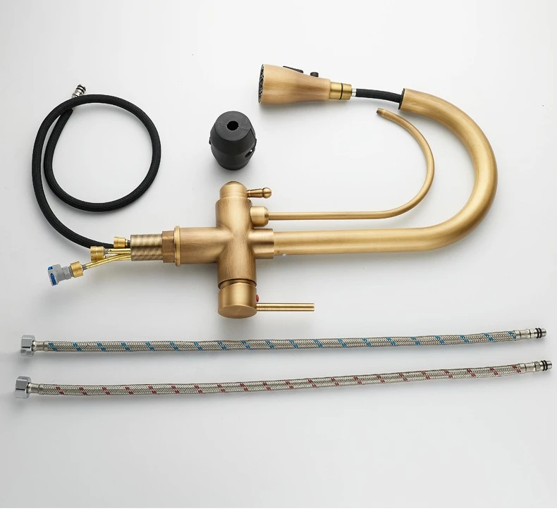 Robinet de cuisine trois en un en laiton massif de Style Antique pur avec bec extractible pour lavabos, robinet de cuisine à trois modes |