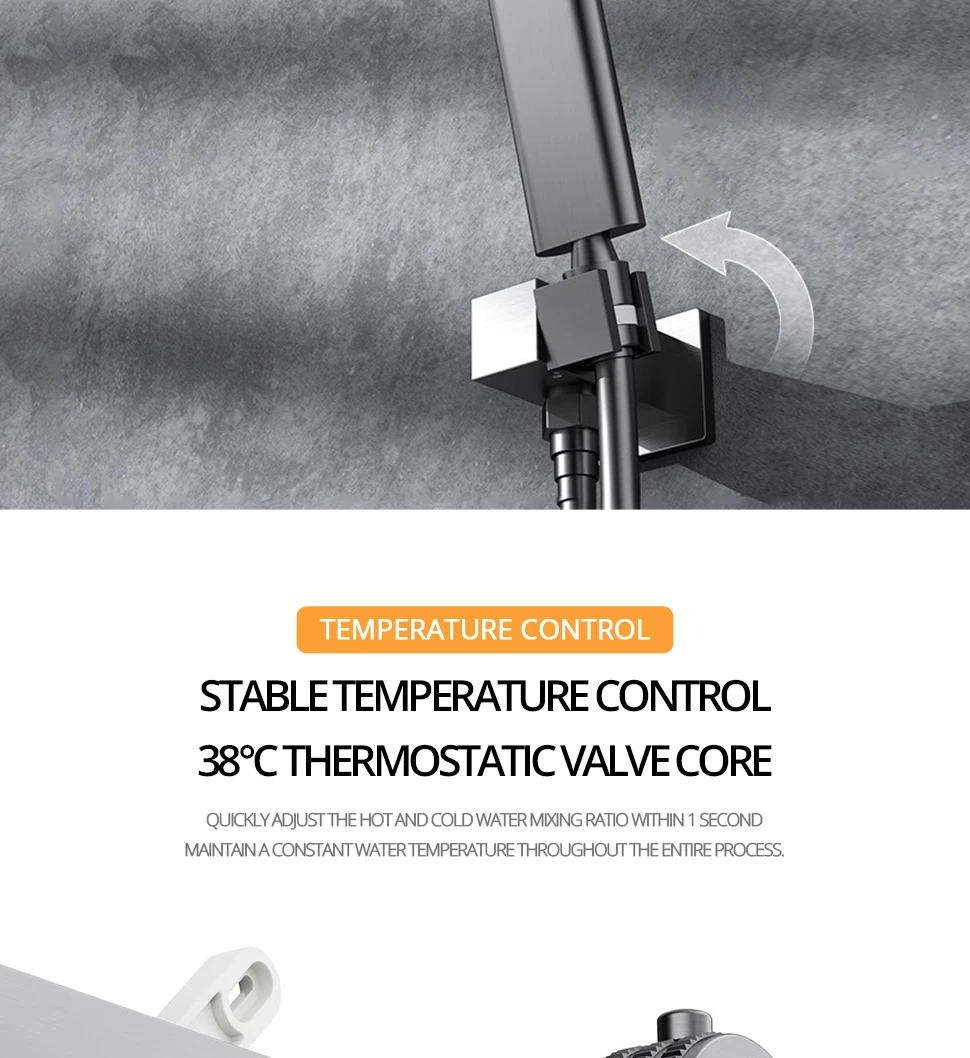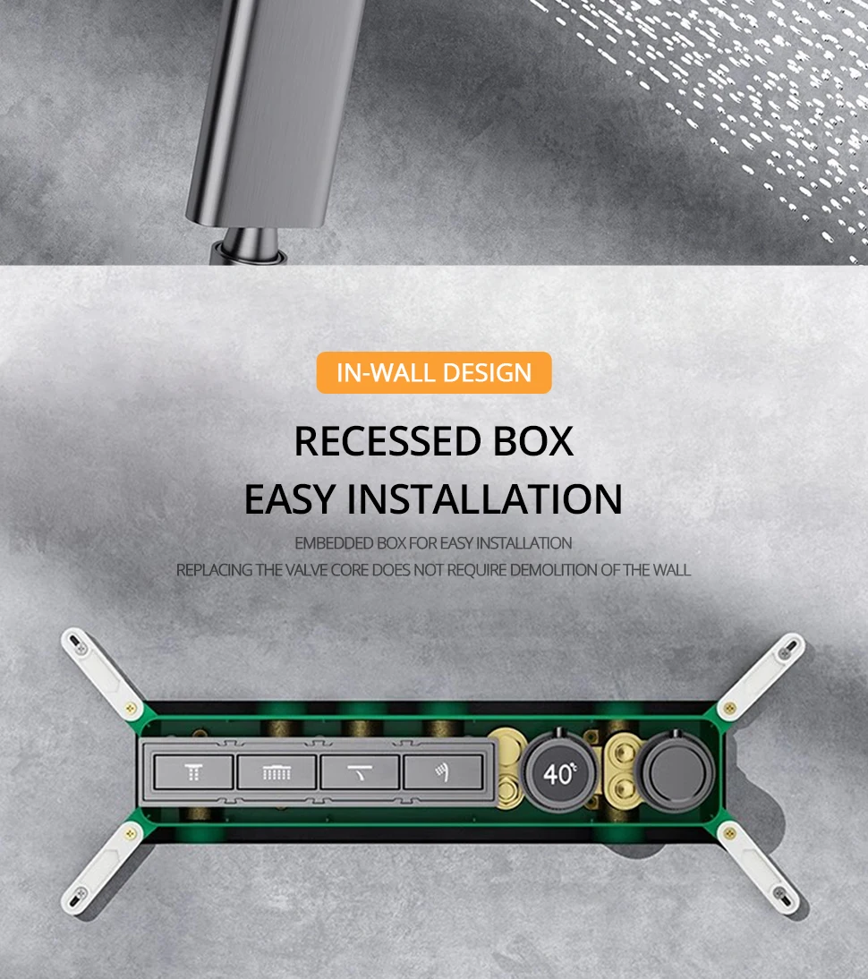 Robinet de douche, boîte encastrée, contrôle au plafond, système de mélangeur de douche à pluie, pomme de douche cascade à haut débit, robinet thermostatiqueRobinet de douche, boîte encastrée, contrôle au plafond, système de mélangeur de douche à pluie, pomme de douche cascade à haut débit, robinet thermostatique