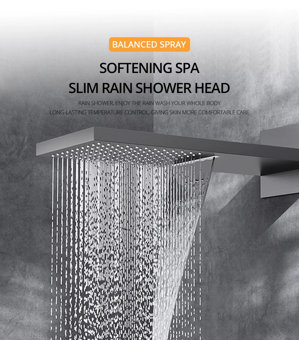 Robinet de douche, boîte encastrée, contrôle au plafond, système de mélangeur de douche à pluie, pomme de douche cascade à haut débit, robinet thermostatique