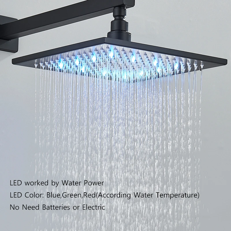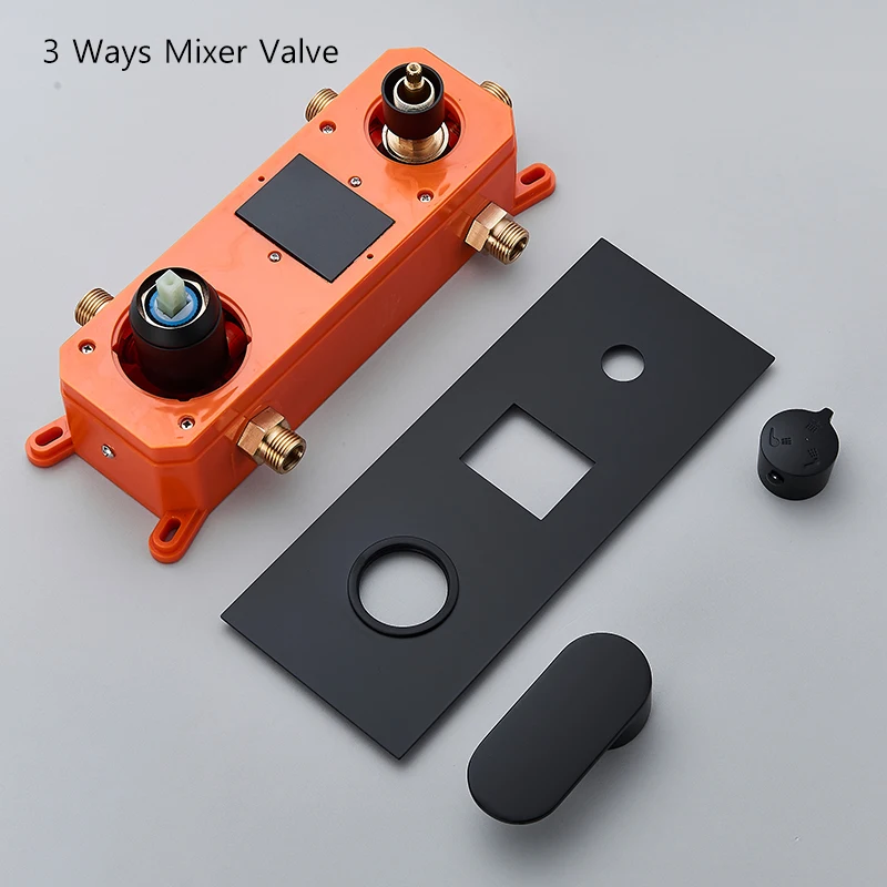 Robinet de douche dissimulé noir mat, pomme de douche à pluie LED, affichage à 2/3 voies, système de douche, robinet de douche de salle de bains