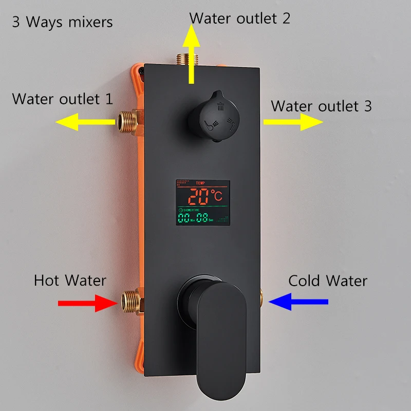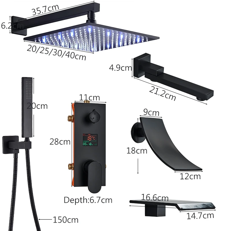 Robinet de douche dissimulé noir mat, pomme de douche à LED, affichage à 2/3 voies, système de douche, salle de bains, robinet de douche