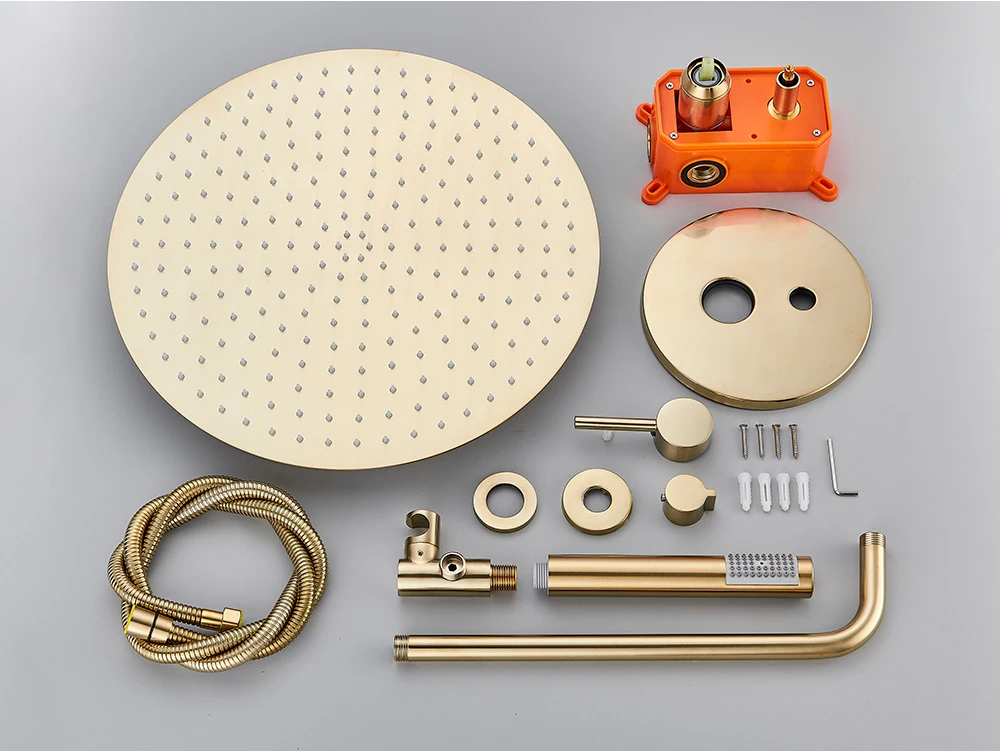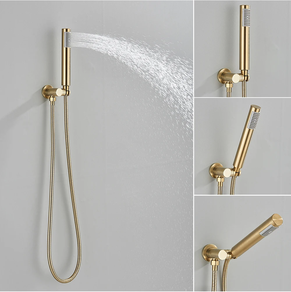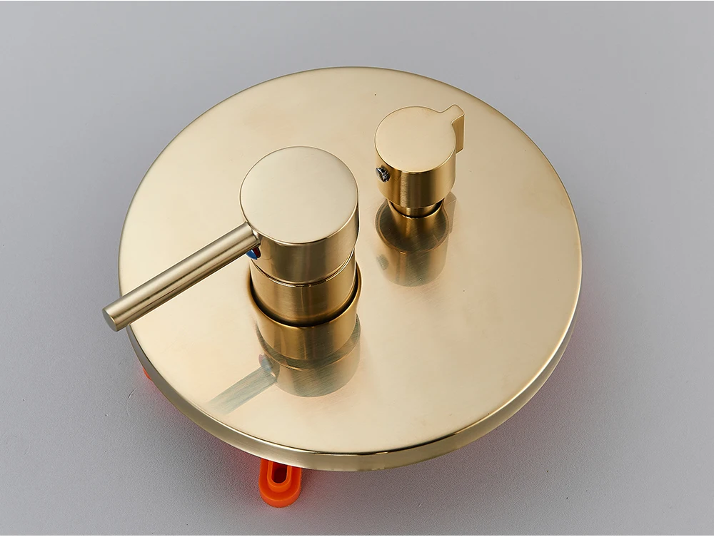 Robinet de douche en or brossé intégré en 2 voies mélangeurs de douche mural pluie salle de bain robinet de douche pomme en acier inoxydableRobinet de douche en or brossé intégré en 2 voies mélangeurs de douche mural pluie salle de bain robinet de douche pomme en acier inoxydable