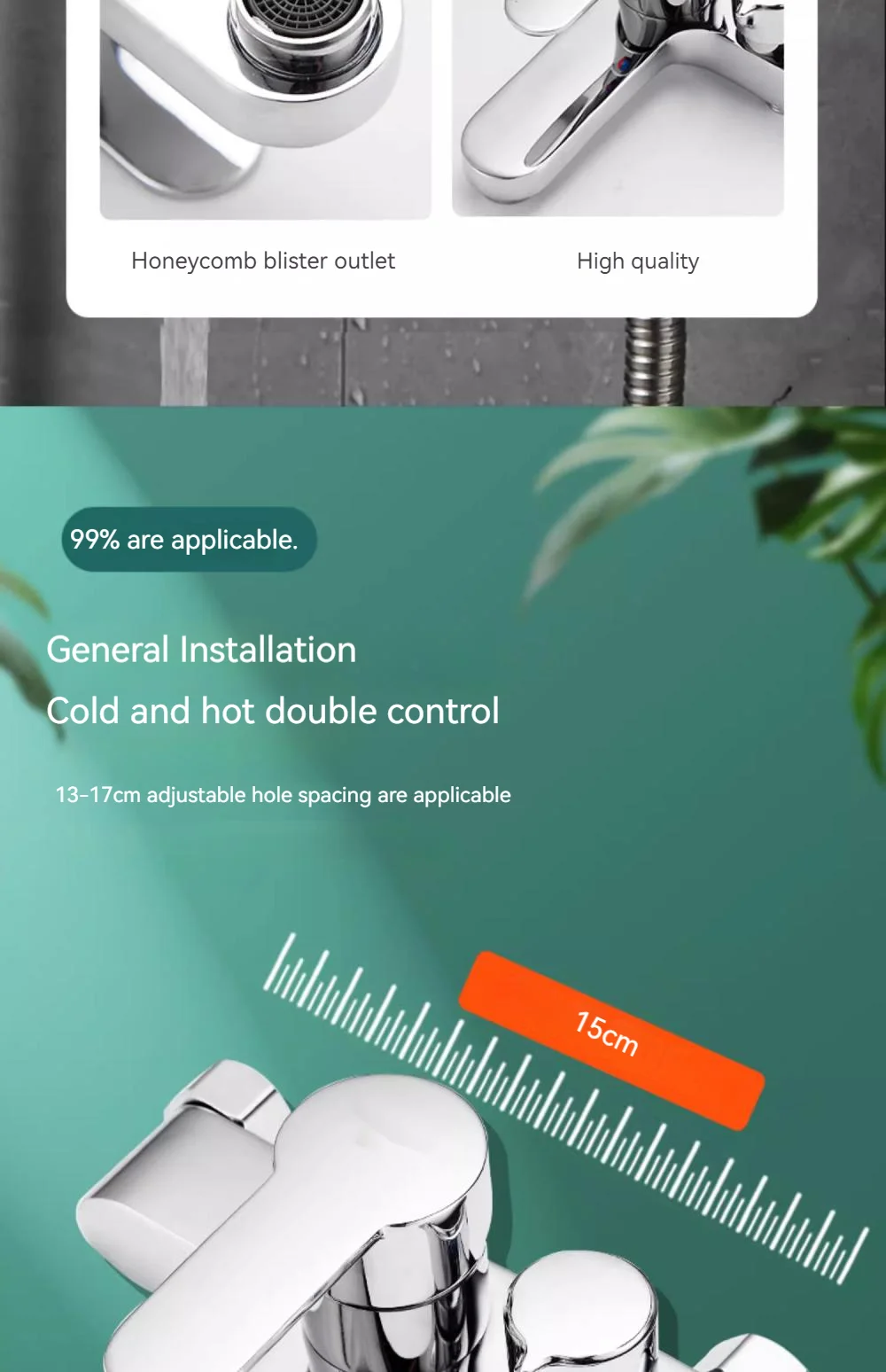 - Type de contrôle de l’eau froide/chaude: Double contrôle à support unique