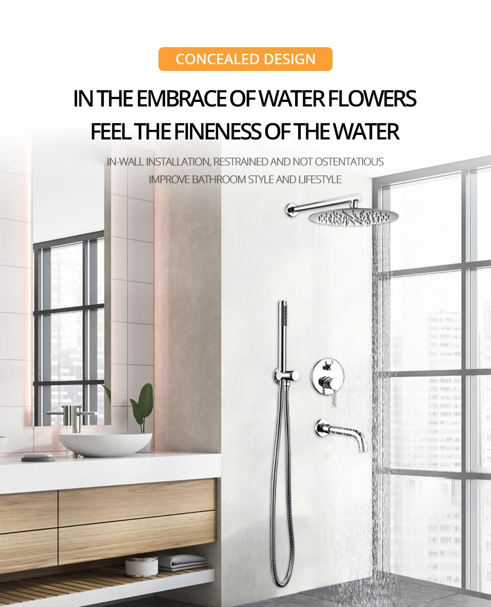 Robinet de douche mural à 3 voies, bec de 21CM, mitigeur de douche chaude et froide, système de douche de salle de bains à pluie de 8 à 16 poucesRobinet de douche mural à 3 voies, bec de 21CM, mitigeur de douche chaude et froide, système de douche de salle de bains à pluie de 8 à 16 pouces