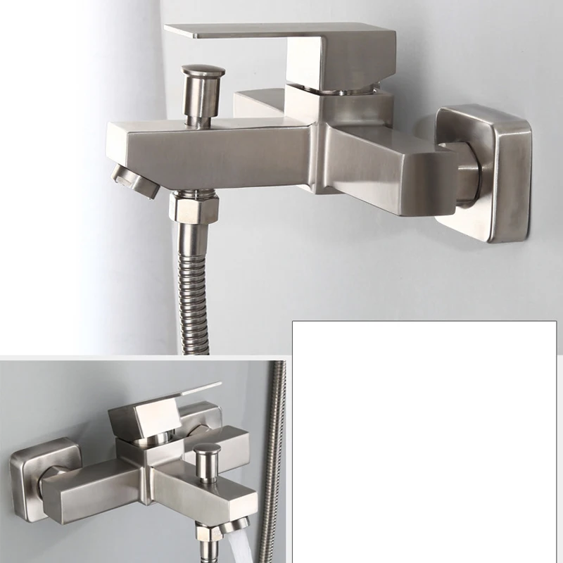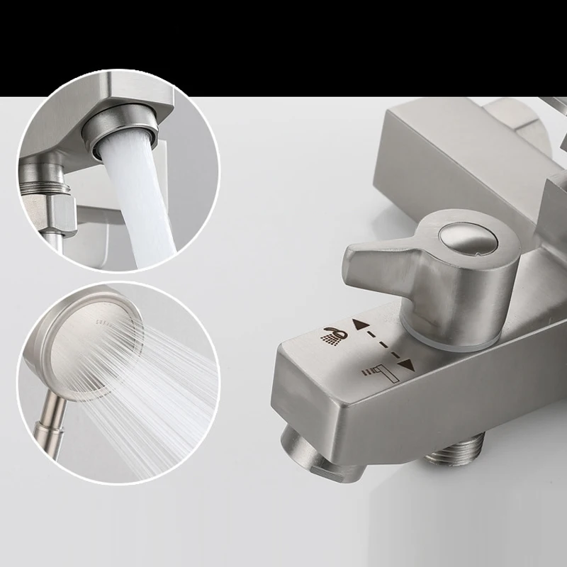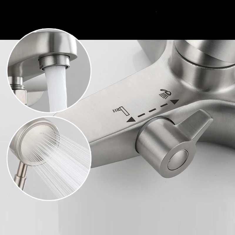 Bathroom Shower Faucet Stainless Steel Triple Bathtub Faucet Mixers Hot Cold Mixer Valve Nozzle Tap Wall Mounted Home Shower Set