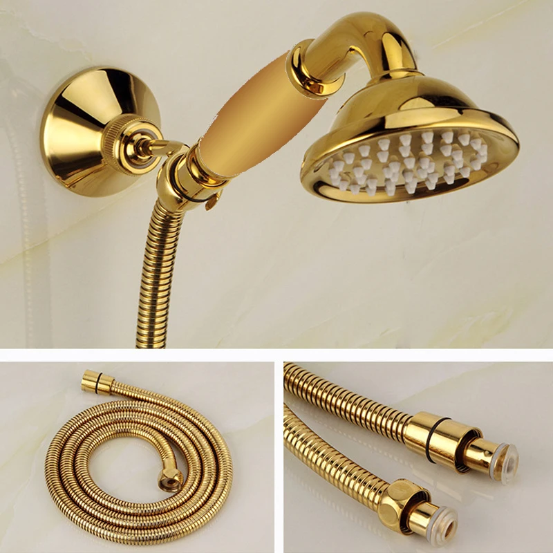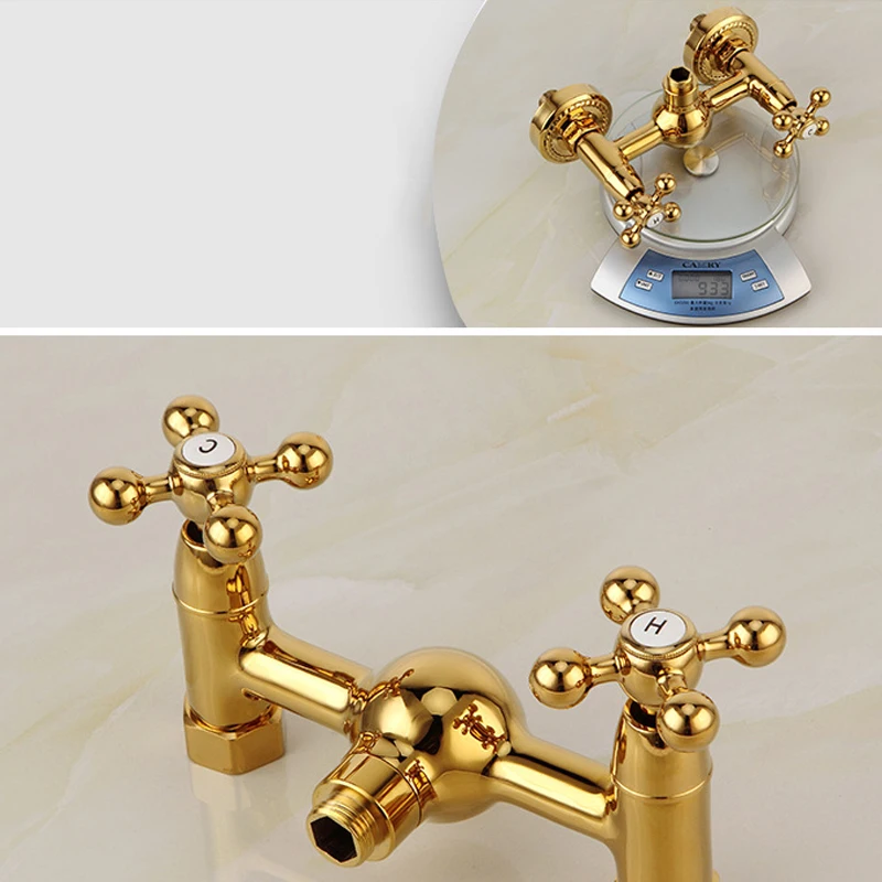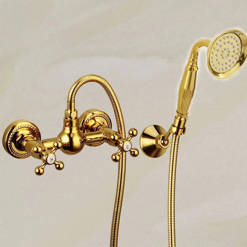 Robinet mitigeur de bain-douche en laiton doré classique de luxe, ensemble de robinets de baignoire dorés à double poignée muraux