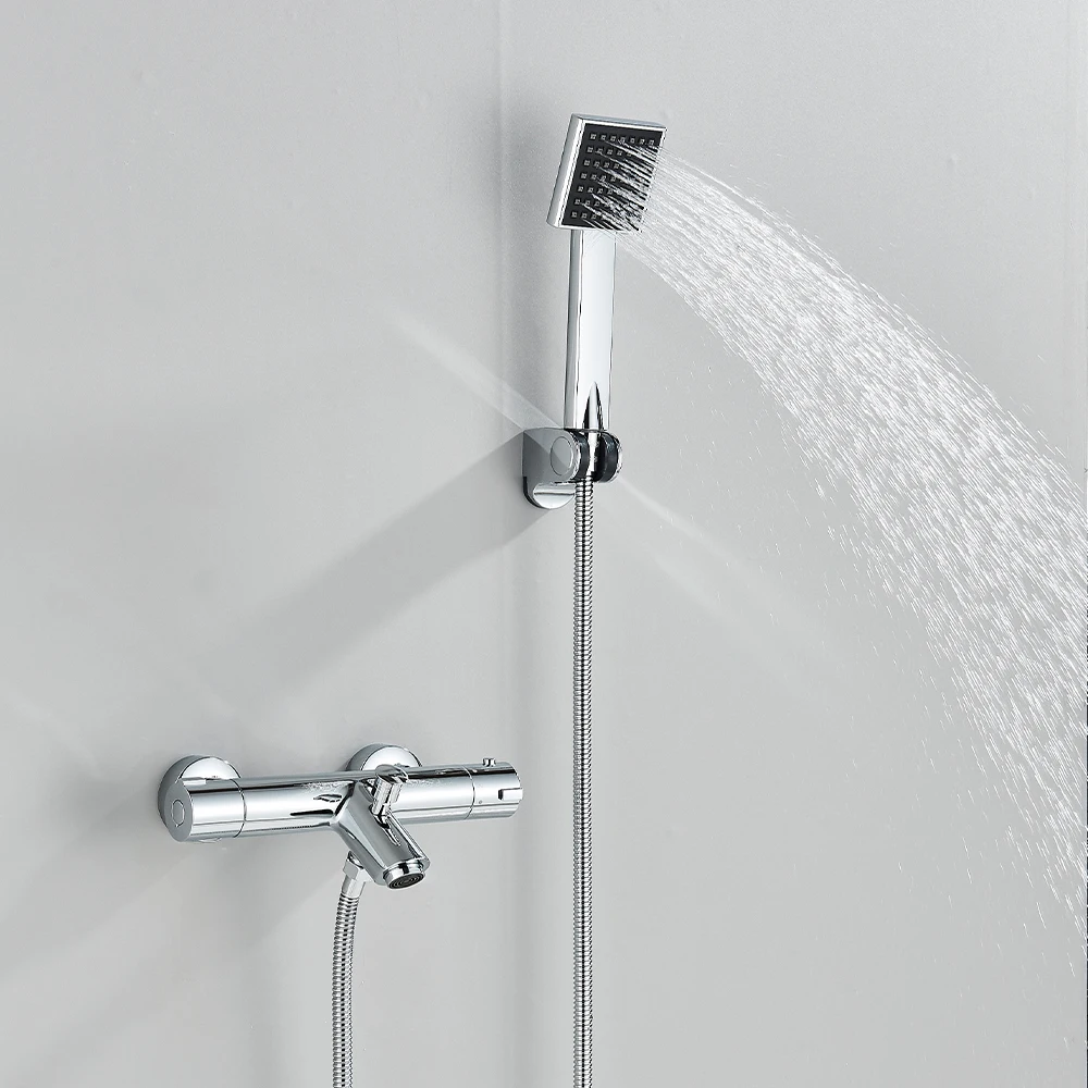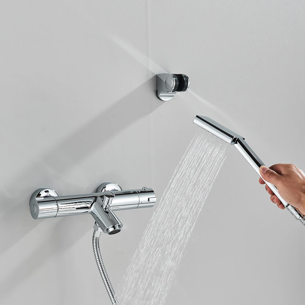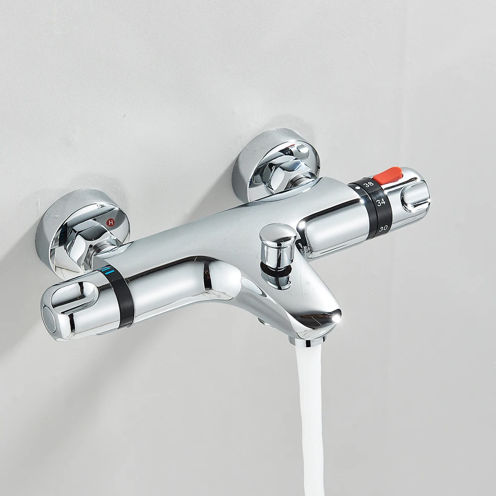 Robinet de douche thermostatique pour salle de bain, robinet chromé, mitigeur thermostatique mural en laiton pour baignoire
