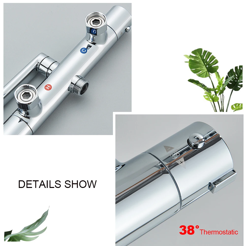 - Feature: Chrome Thermostatic Shower Faucets Set Bath Shower