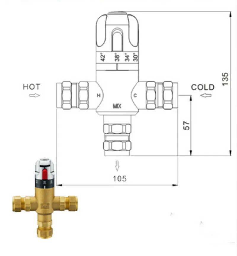 Mitigeur thermostatique en laiton, vanne de contrôle de la température de la douche