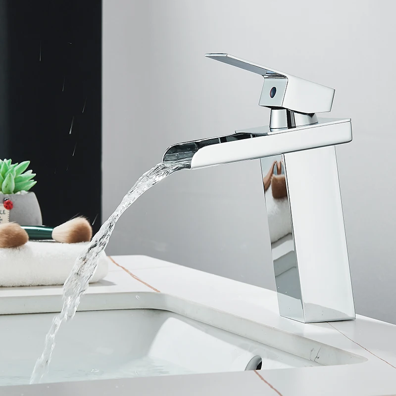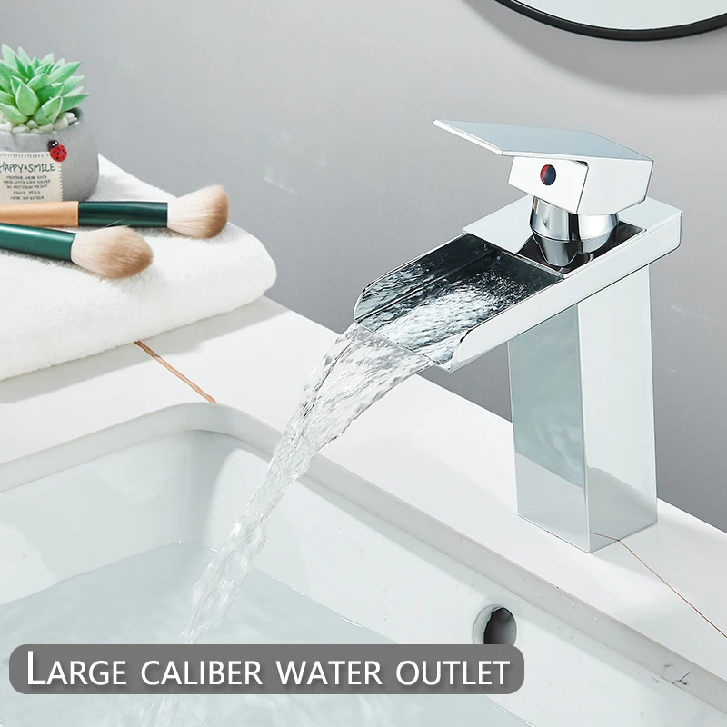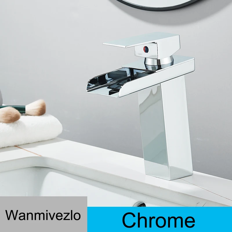 Wholesale And Retail Waterfall Bathroom Basin Faucet Chrome Deck Mount Vanity Vessel Sinks Mixer Tap Cold Hot Water Mixer Tap Crane