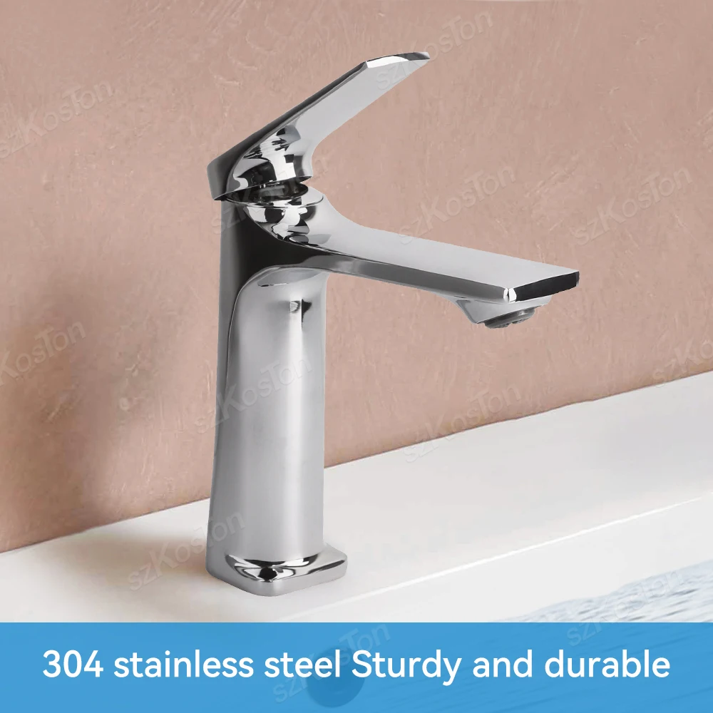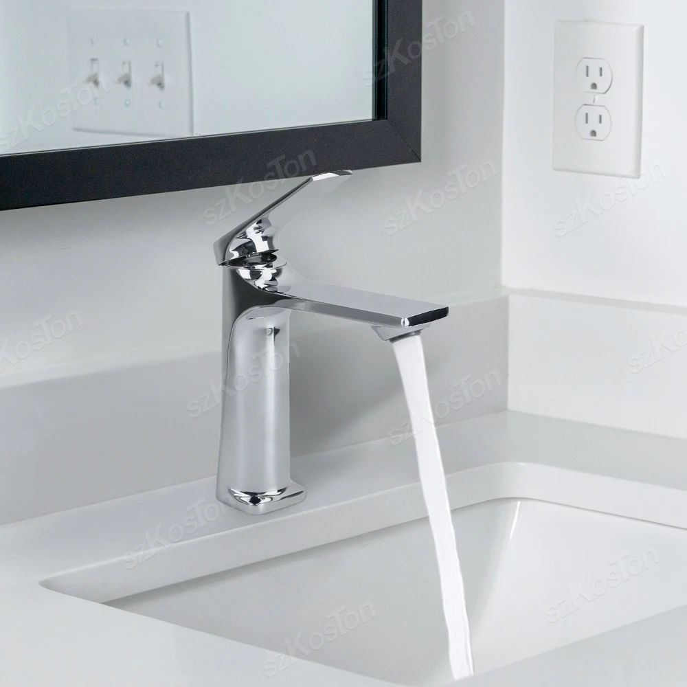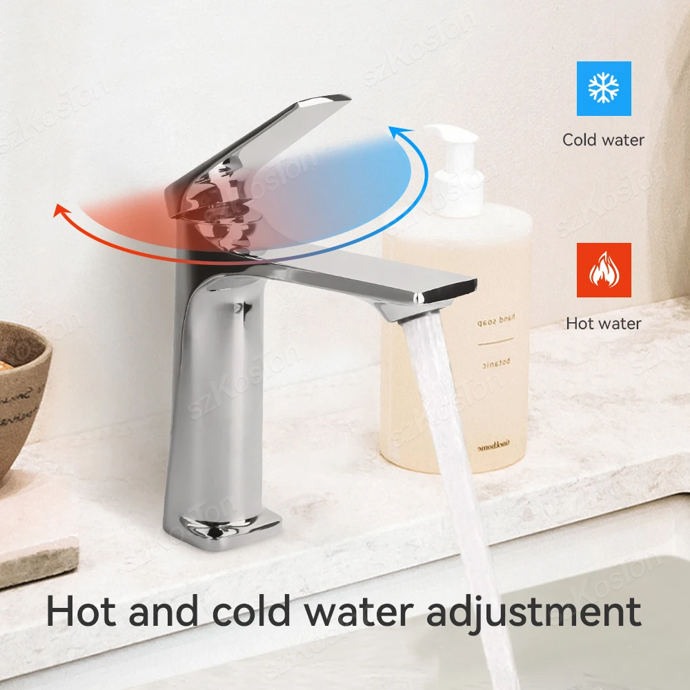 Robinet Mitigeur Mitigeur de Bassin en Laiton Argenté pour Salle de Bain, Robinet Mitigeur de Bassin d’Eau Chaude Froide, 1 Pièce