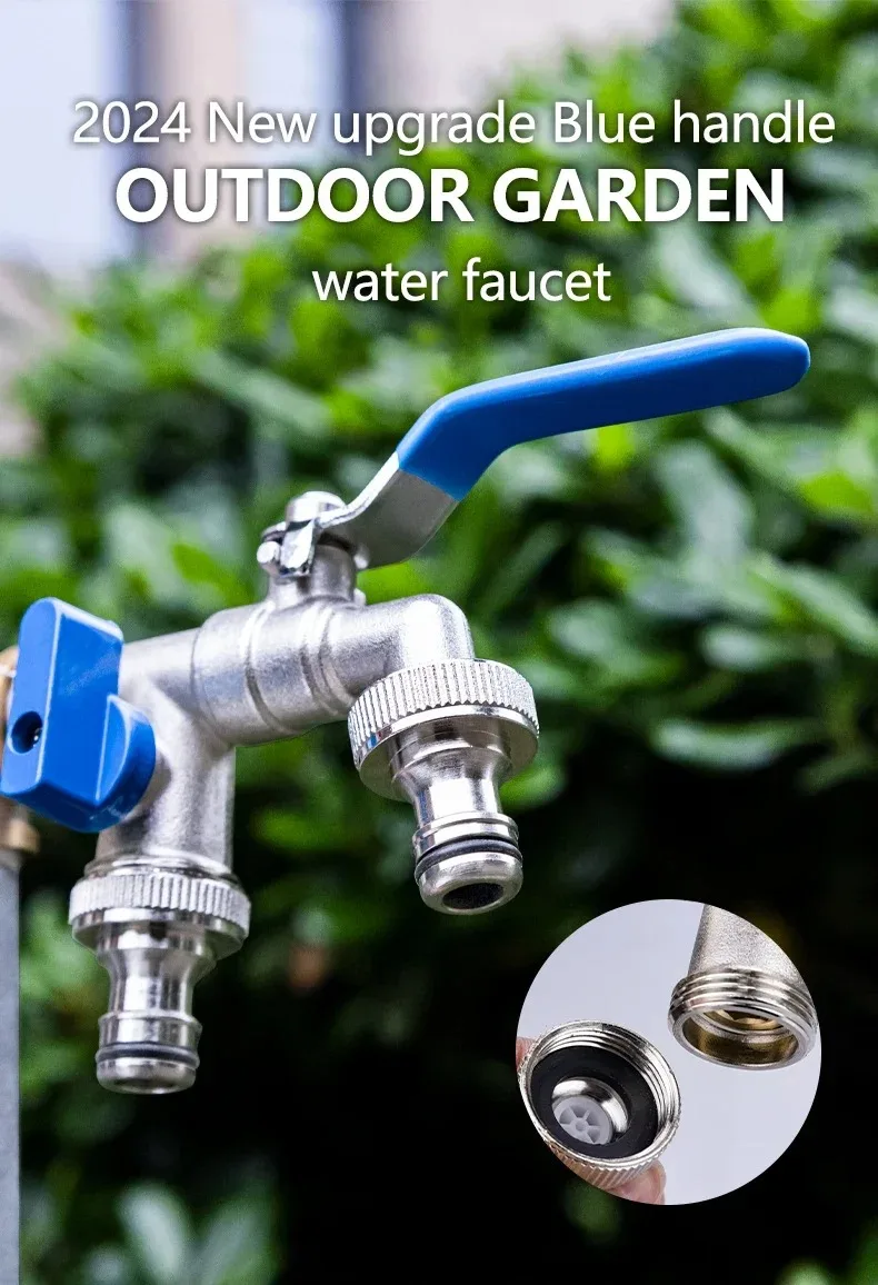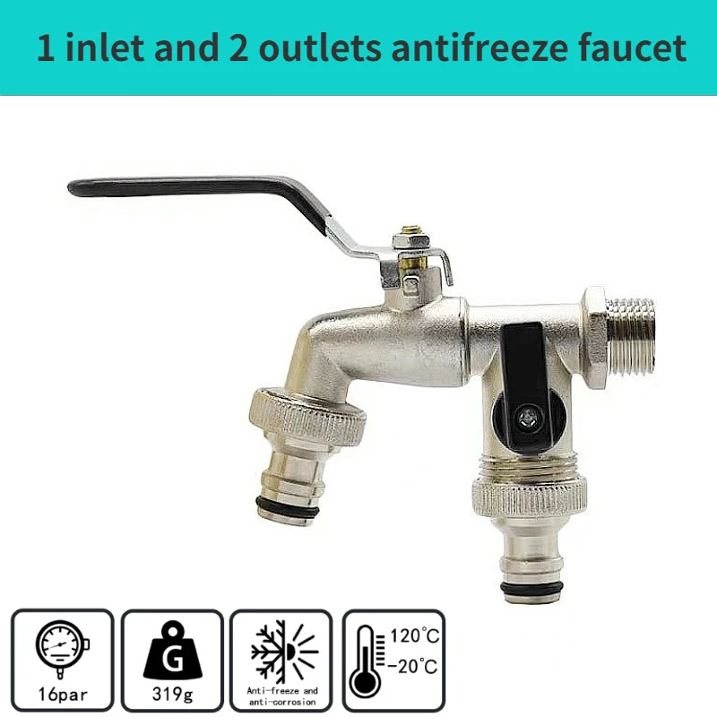 Robinet de jardin extérieur avec robinet antigel à 1 entrée et 2 sorties, équipé d’un robinet noir en laiton à double joint, outil de jardin