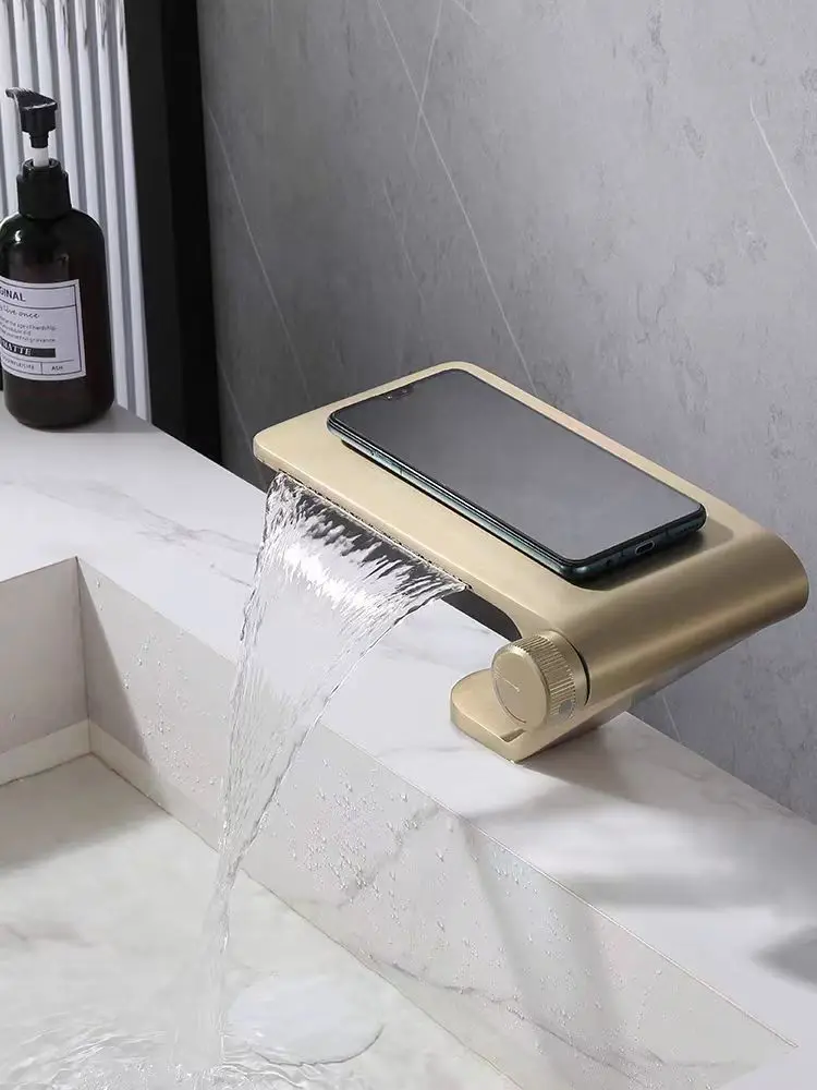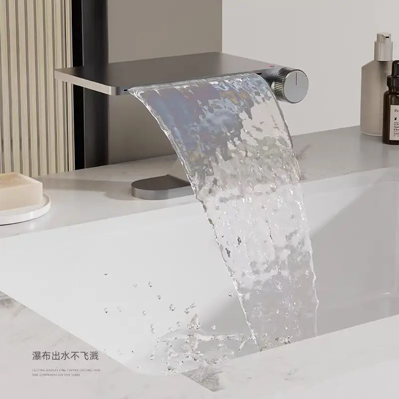 Robinet d’évier de salle de bain cascade en laiton de qualité supérieure robinet de lavabo à une poignée robinet de lavabo à eau chaude et froide, gris pistolet, noir
