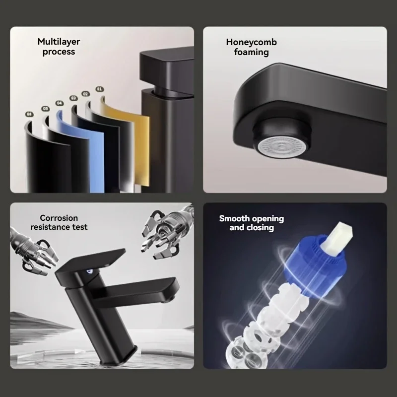 * Un excellent traitement de surface anticorrosion et antirouille empêche la saleté de coller à la surface du robinet.Lors d’une utilisation quotidienne, il suffit de nettoyer le robinet avec un chiffon.