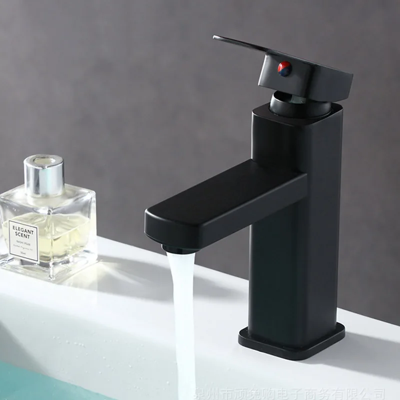 Robinet de lavabo carré en acier inoxydable, robinet de cuisine de salle de bains domestique à double usage chaud et froidRobinet de lavabo carré en acier inoxydable, robinet de cuisine de salle de bains domestique à double usage chaud et froid
