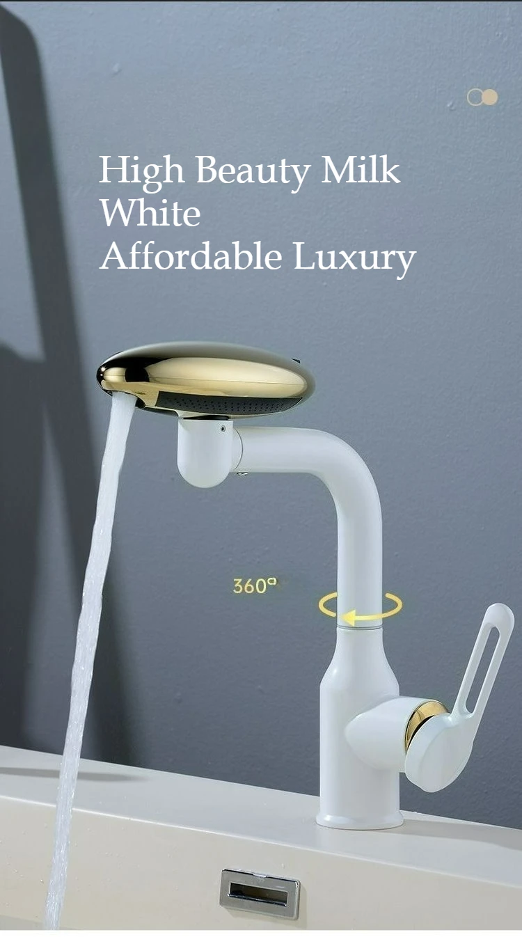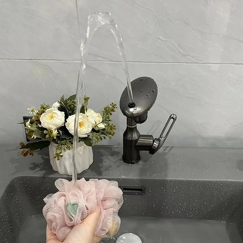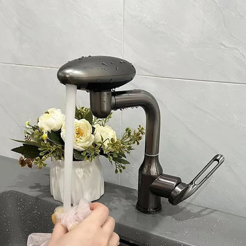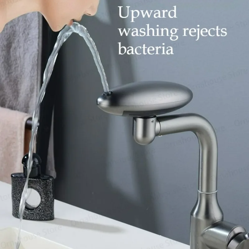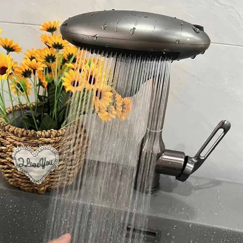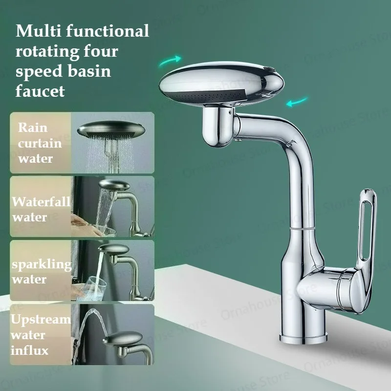 Robinet de lavabo cascade multifonctionnel, pulvérisateur à jet de 4 modes 360 ° Mélangeur d’évier d’eau chaude et froide à Rotation, robinet de lavage en acier inoxydable