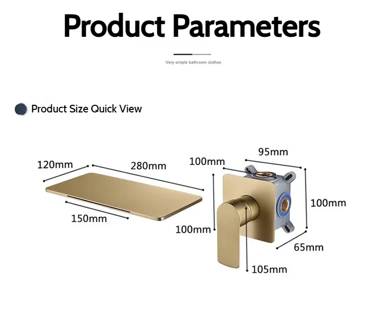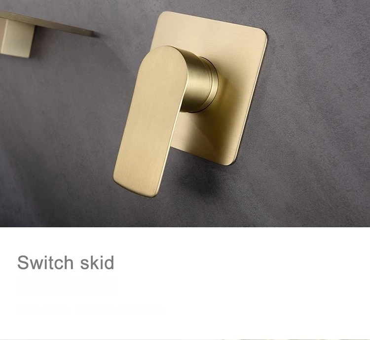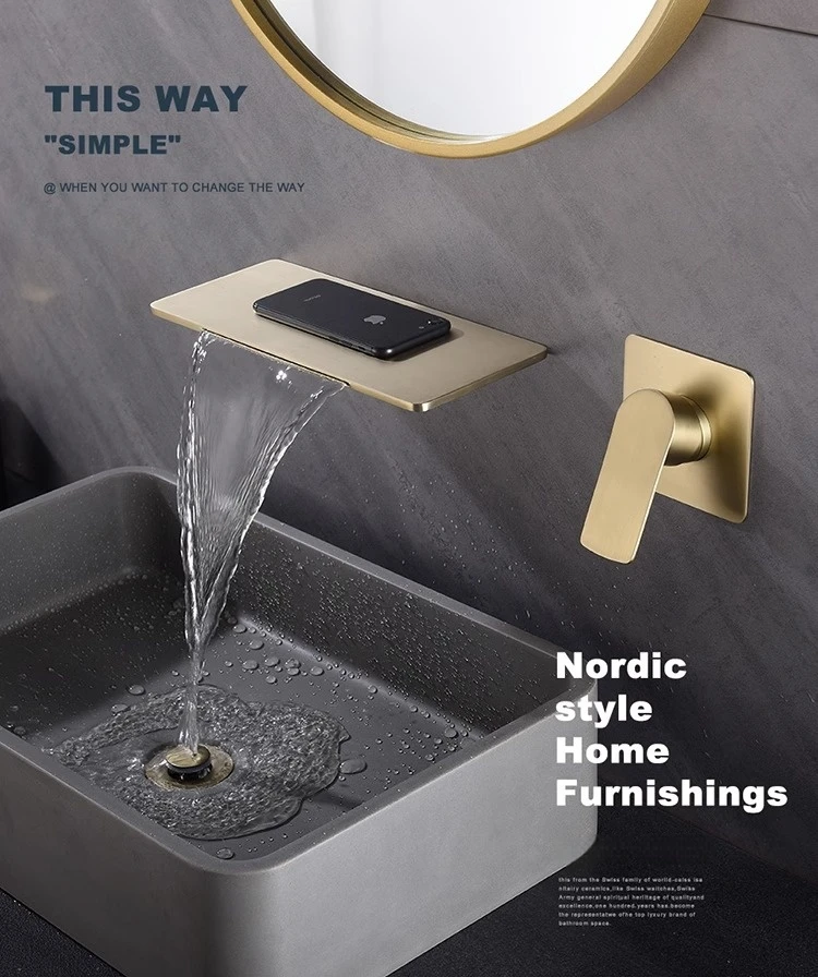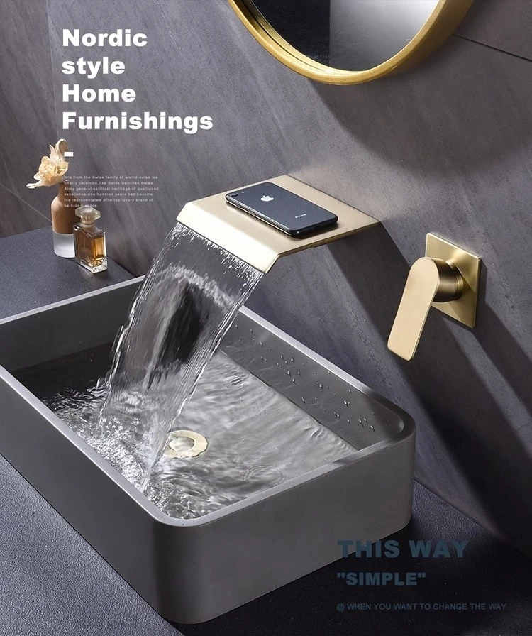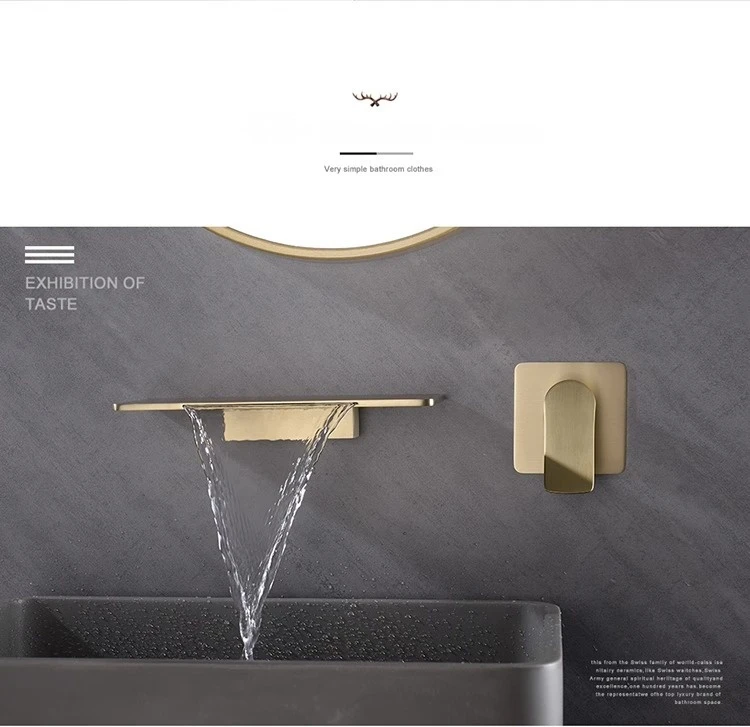 Robinet de lavabo cascade mural doré, robinet d’évier de salle de bains, robinet d’évier de lavabo en laiton dissimulé, mitigeur d’eau chaude et froide