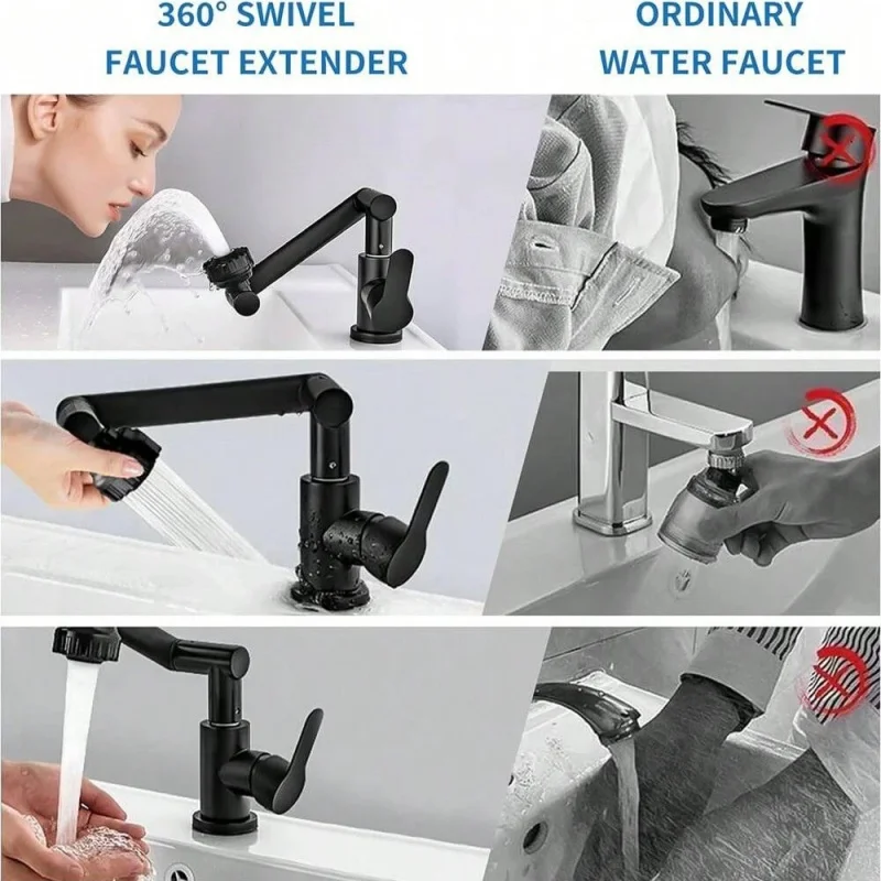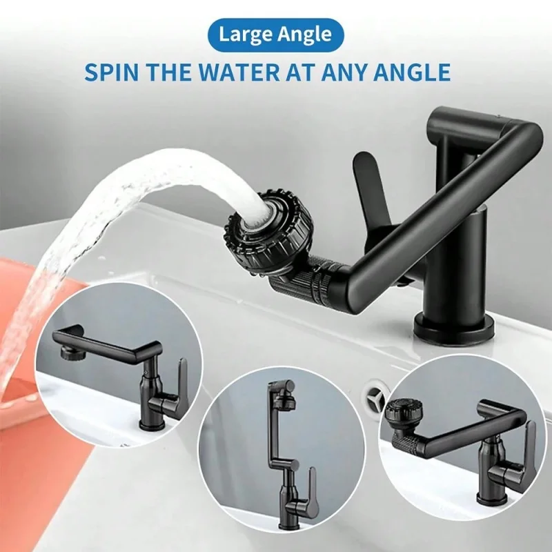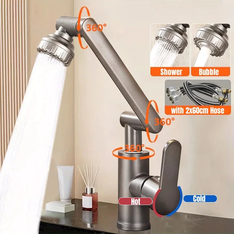 Robinet d’évier de salle de bains universel à bras mécanique avec tuyau 1080 ° Robinet d’eau froide et chaude multifonction pivotant, robinet d’évier de cuisine, robinet d’eau 2 Modes