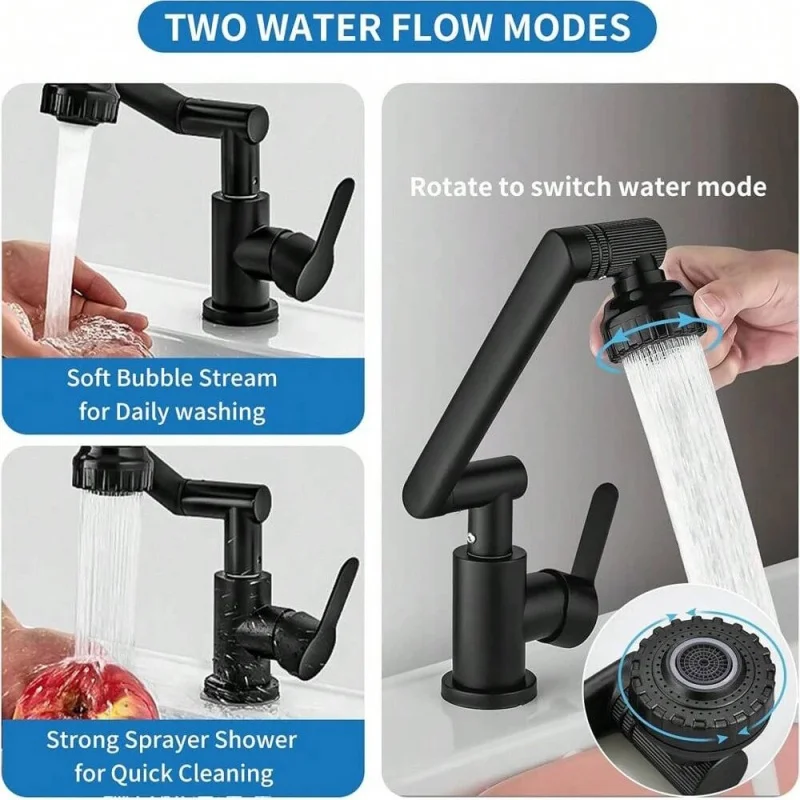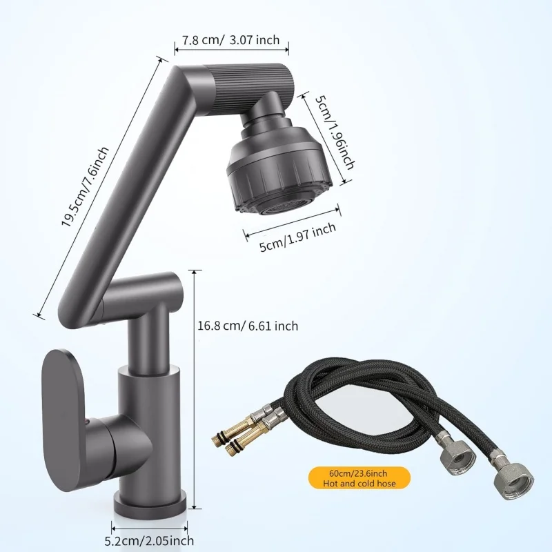 Arrosez dans toutes les directions que vous souhaitez : notre robinet d’évier de salle de bain dispose de trois parties qui peuvent pivoter à 360 degrés, ce qui peut répondre à votre demande d’eau dans n’importe quelle direction.Résolvez le problème que vous vous cognez toujours la tête sur le robinet lorsque vous vous lavez le visage et les cheveux.