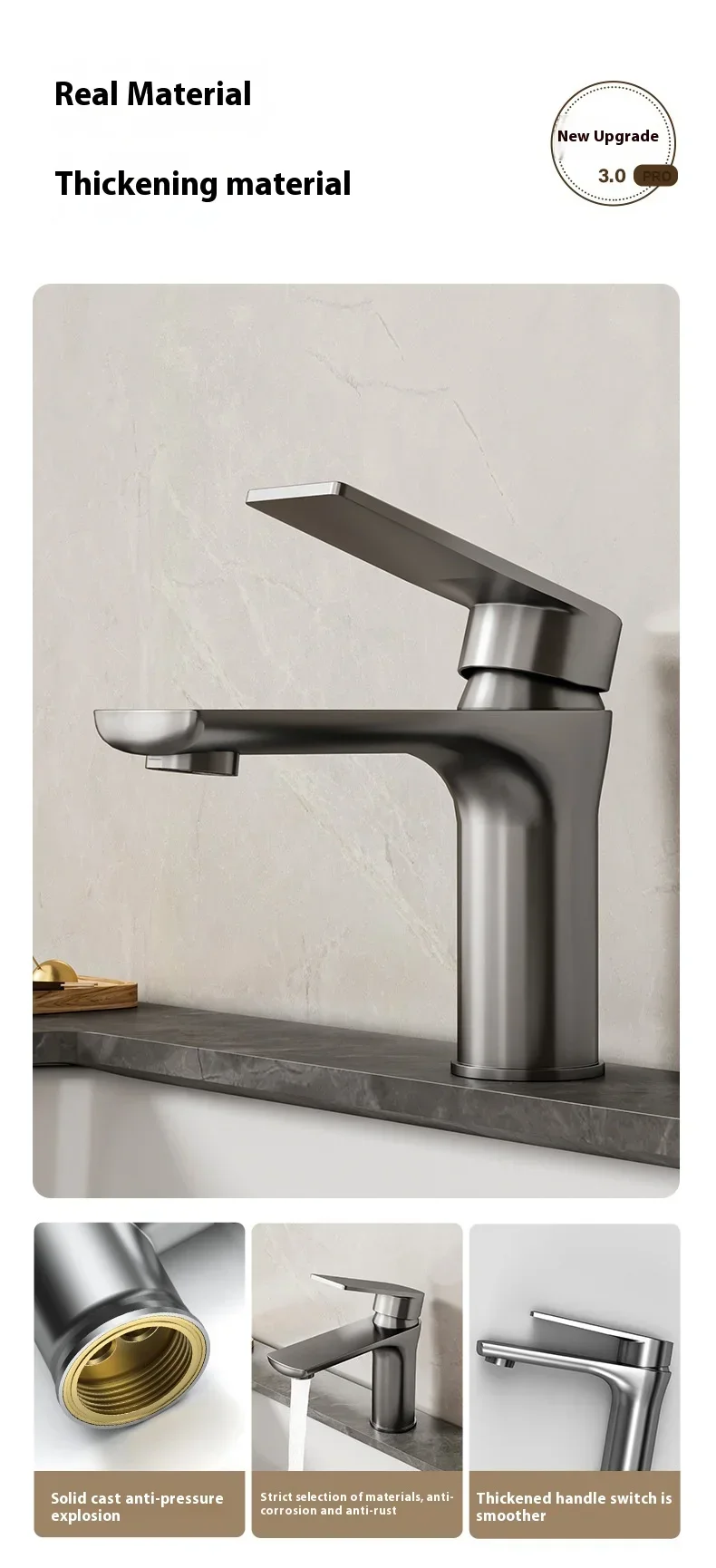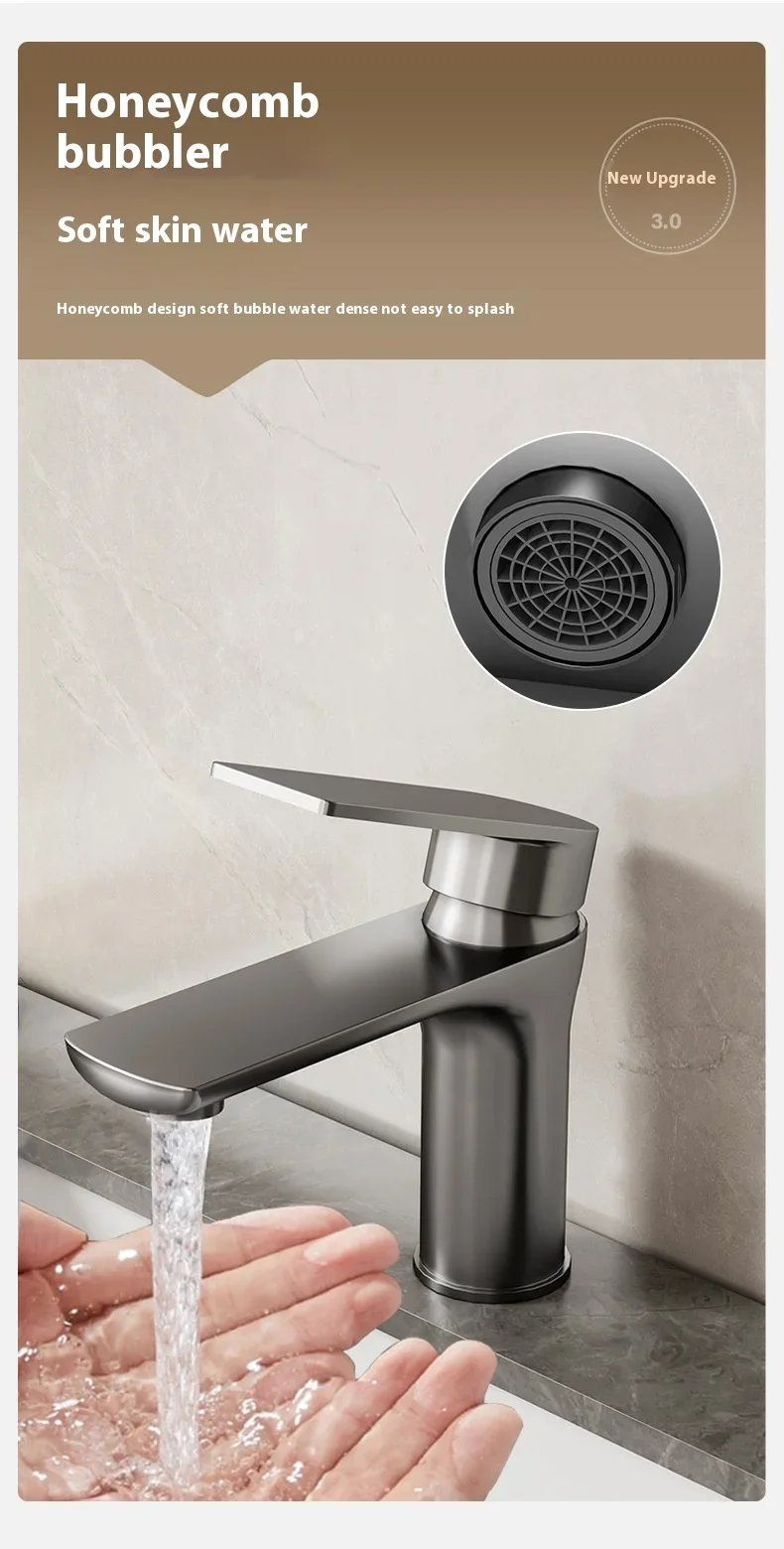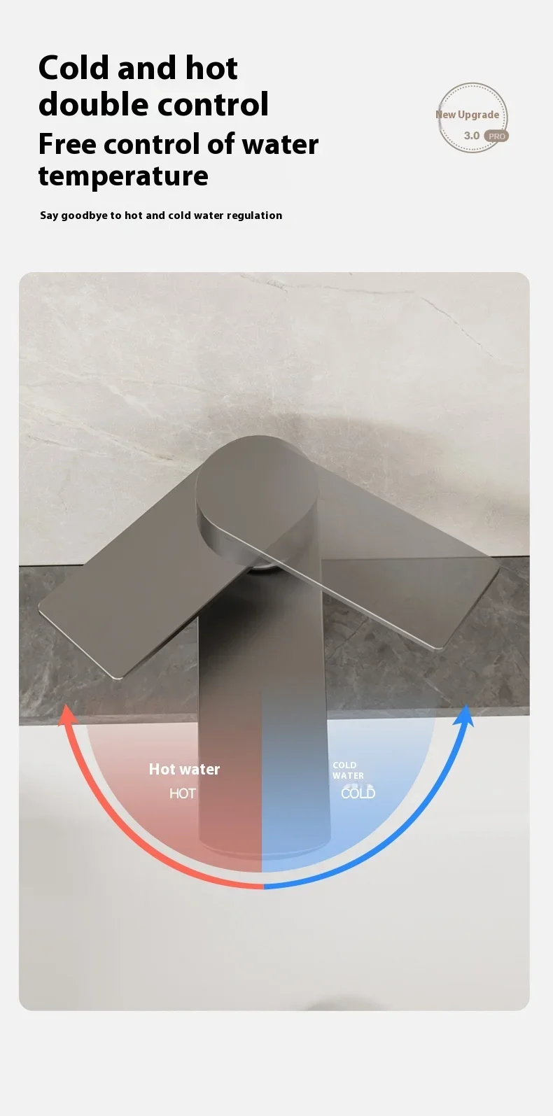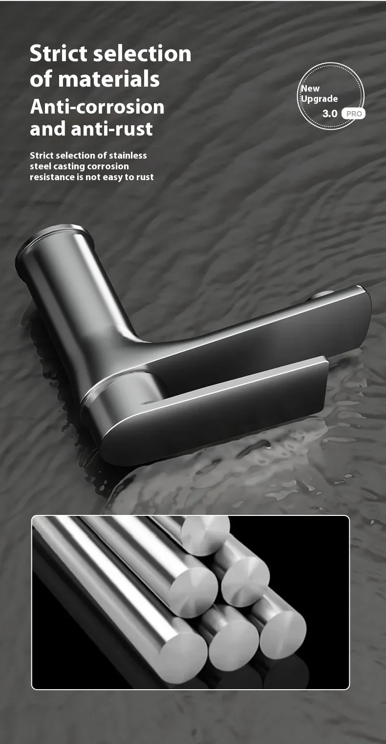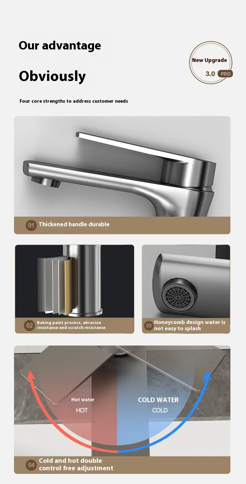 Titre : Robinet de salle de bain en acier inoxydable avec mitigeur d’eau chaude/froide pour lavabo et lavabo