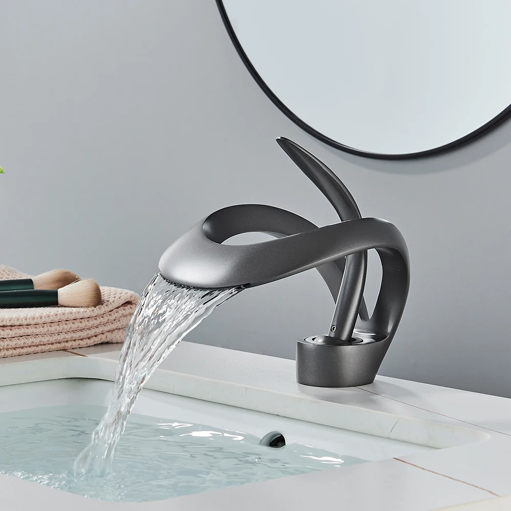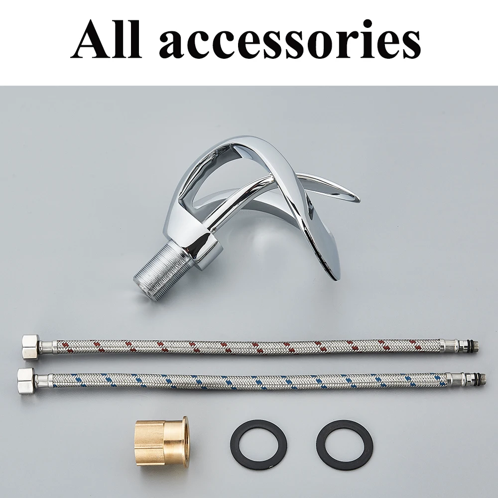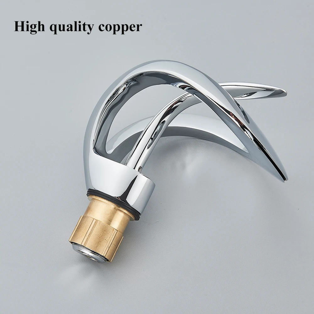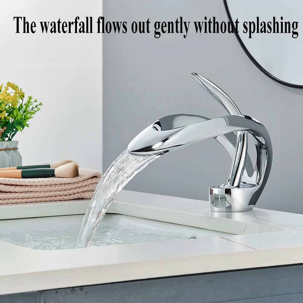Le robinet de lavabo de salle de bains créatif en cascade chromée est un robinet d’évier monté sur le pont qui mélangent l’eau chaude et froide. Il présente un corps Crane Brass et un robinet monotrou, conçu pour fournir un look unique et élégant.