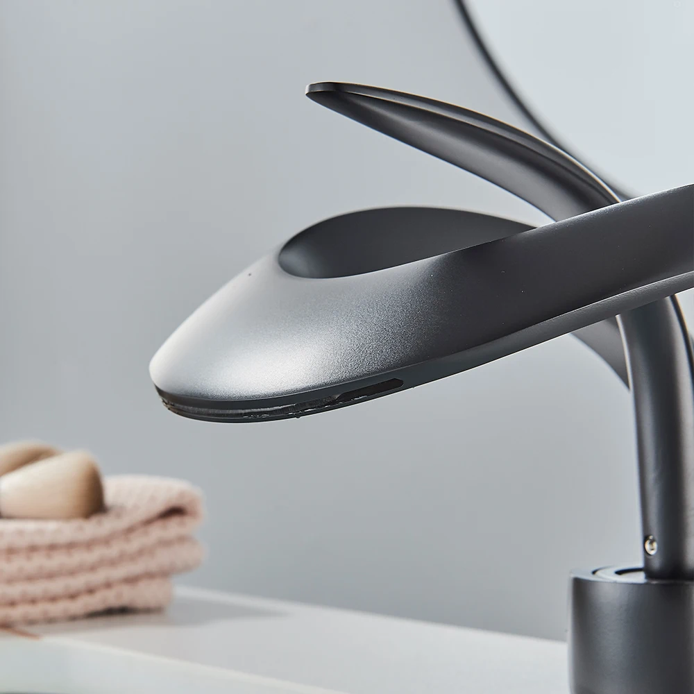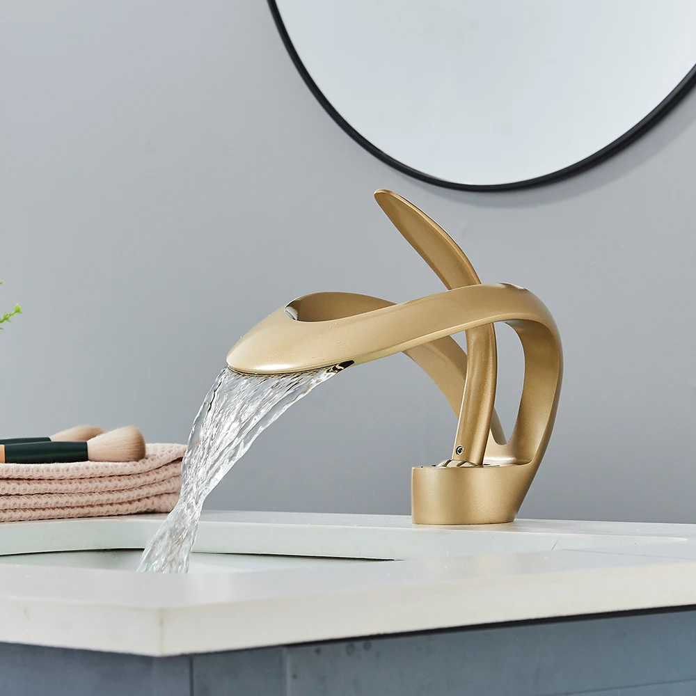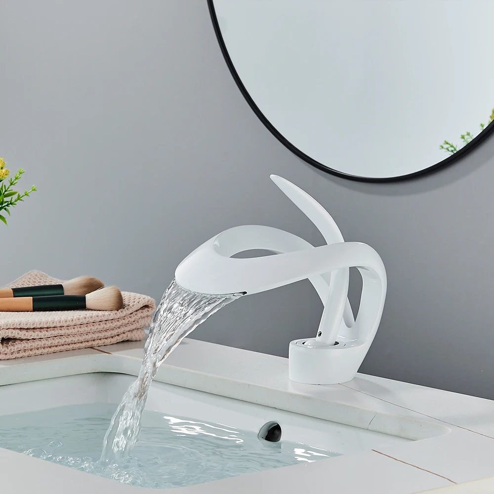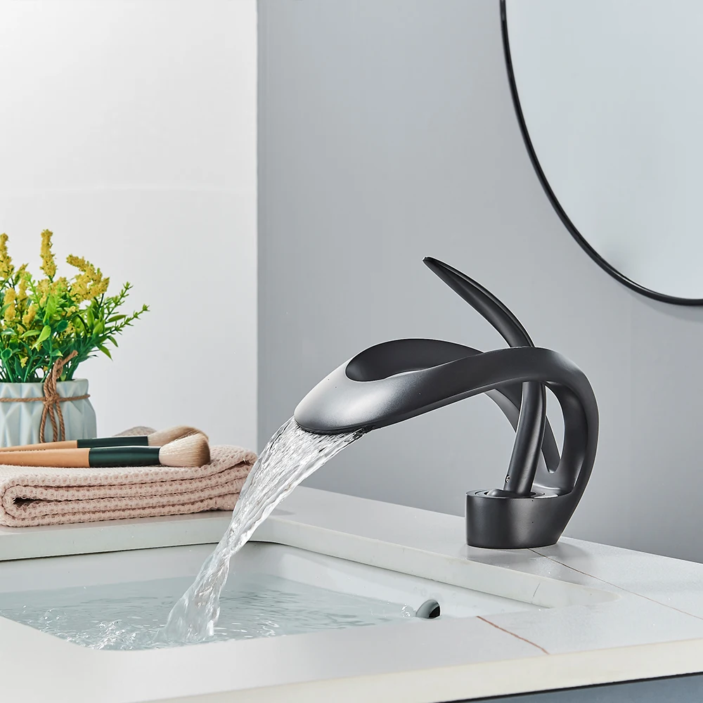 Le robinet de lavabo de salle de bains créatif en cascade chromée est un robinet d’évier monté sur le pont qui mélangent l’eau chaude et froide. Il présente un corps Crane Brass et un robinet monotrou, conçu pour fournir un look unique et élégant.