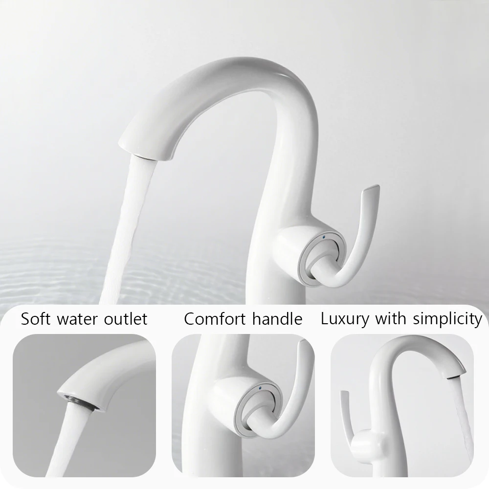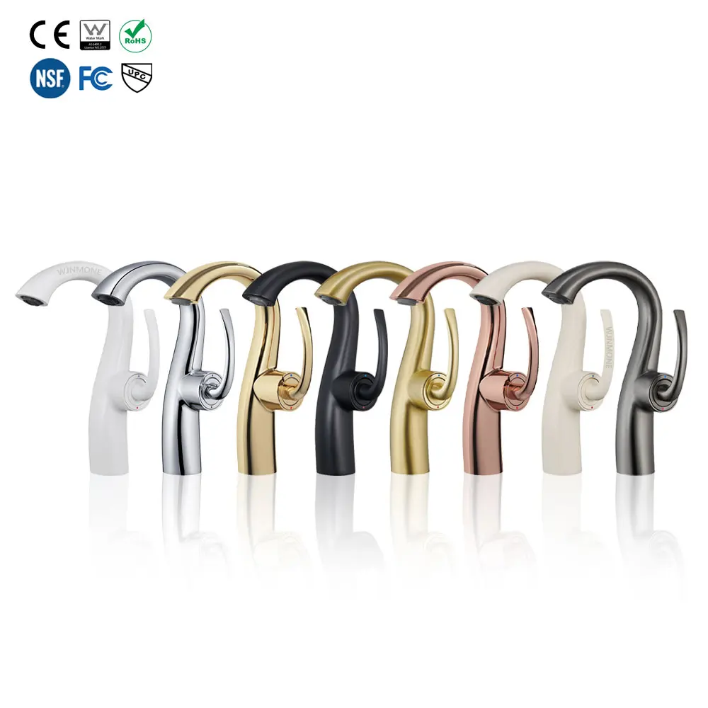 Robinet de lavabo de salle de bains en laiton massif moderne, robinets d'eau froide et chaude, robinets mélangeurs de vanité de grue, robinet de lavage en céramique, robinet d'évier de salle de bains