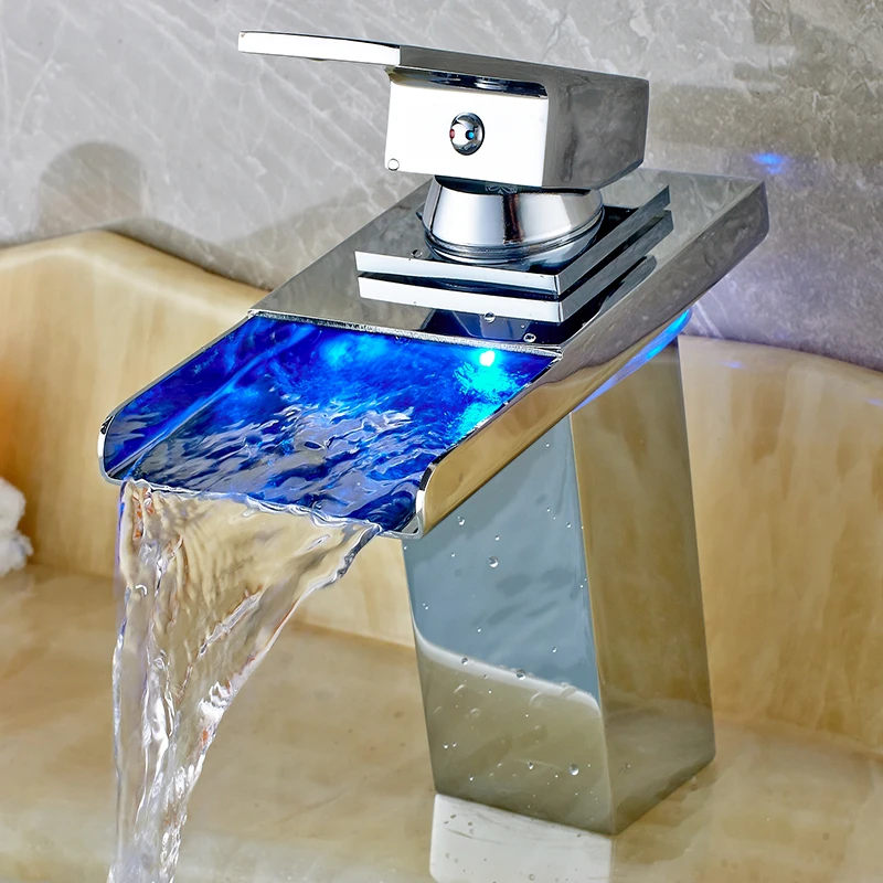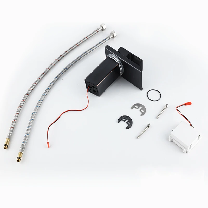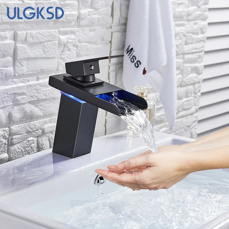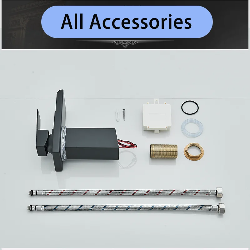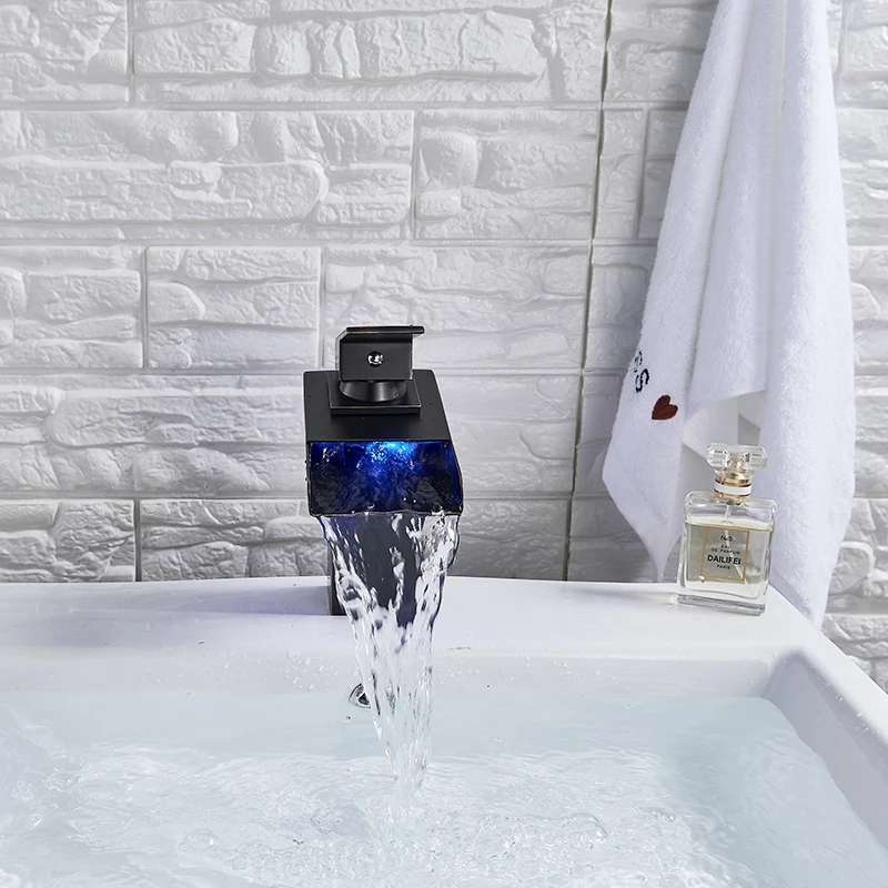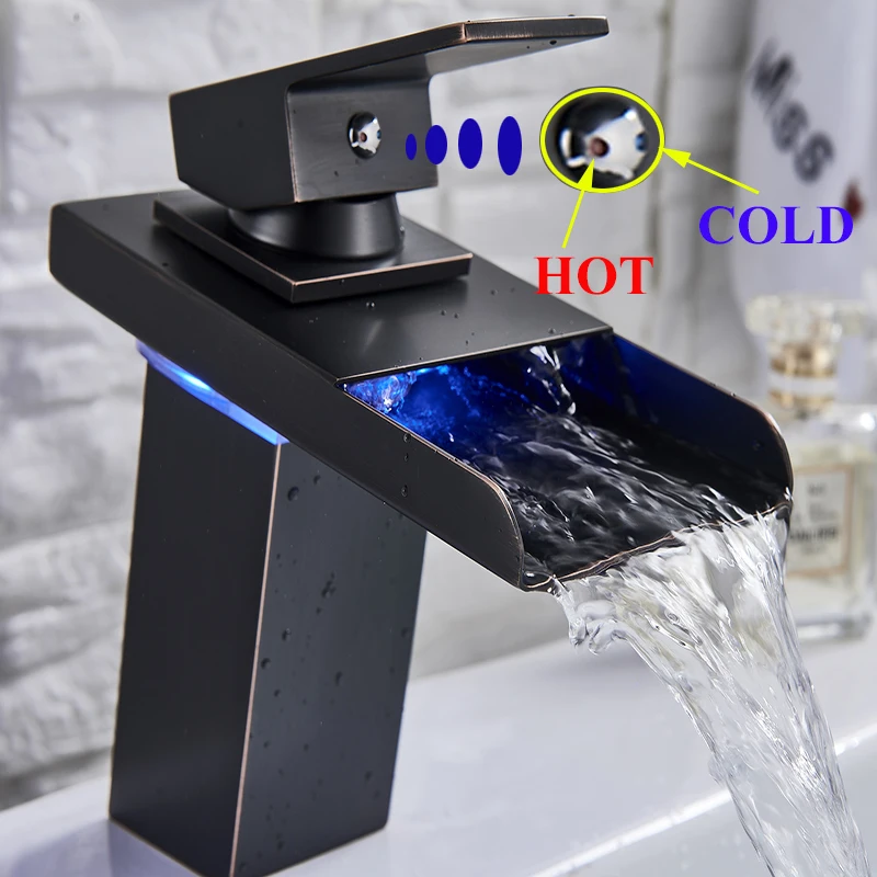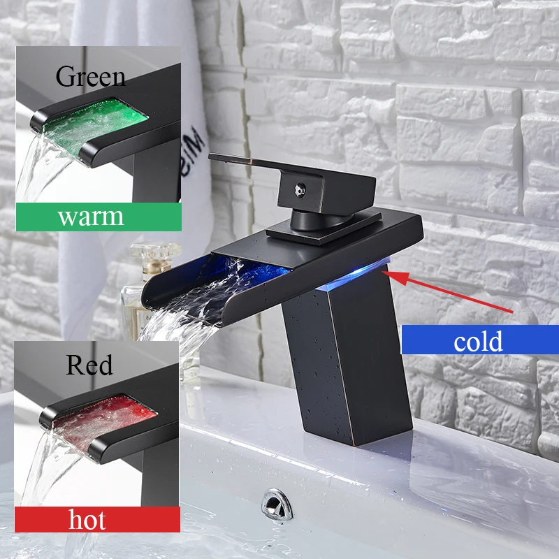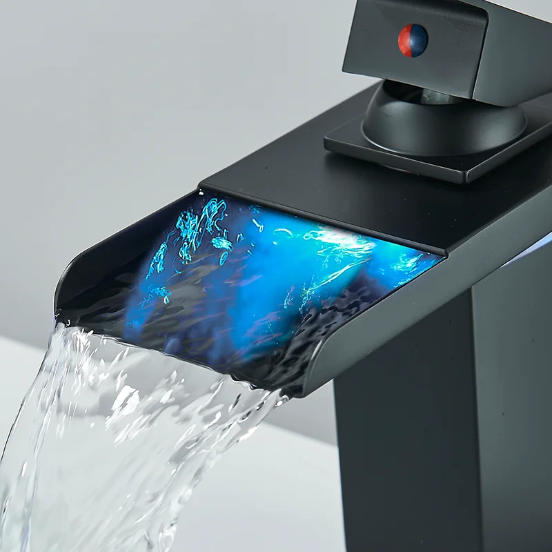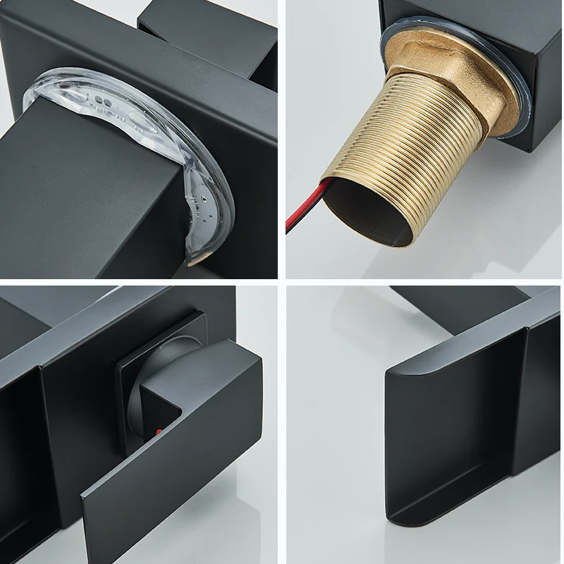 Robinet de lavabo de salle de bains LED noir, mitigeur d’eau chaude et froide à Induction de température, changement de couleur, avec boîte de batterie, Installation sur le pont