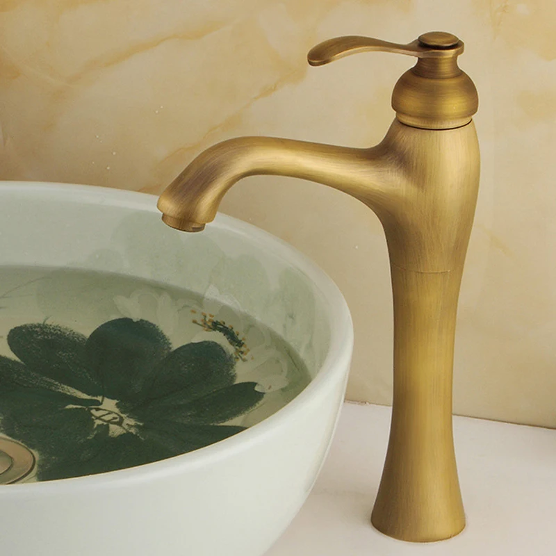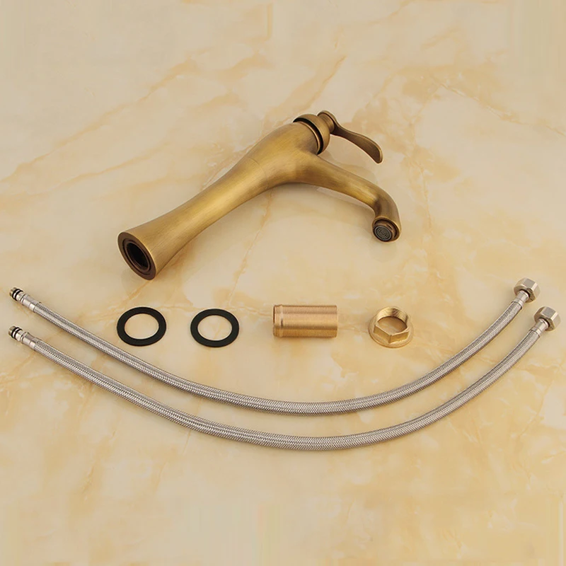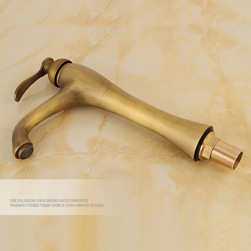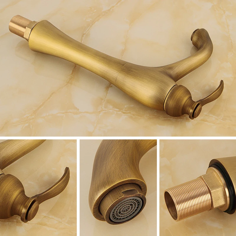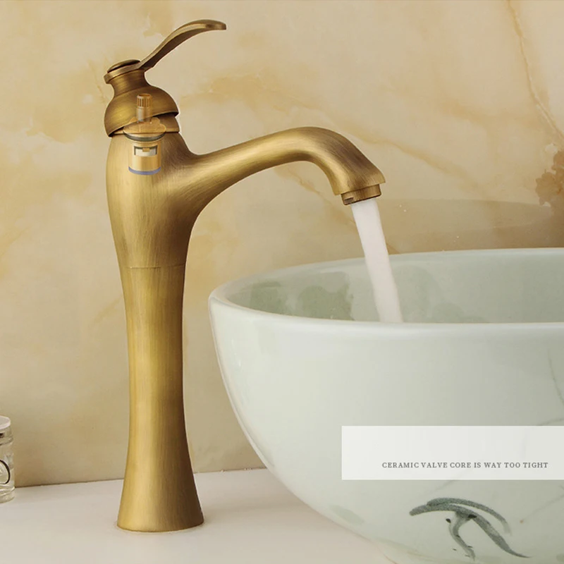 Robinet de lavabo de salle de bains à trou unique en laiton Antique, mélangeur d’eau chaude et froide, robinet de lavabo en cuivre, Style Vintage