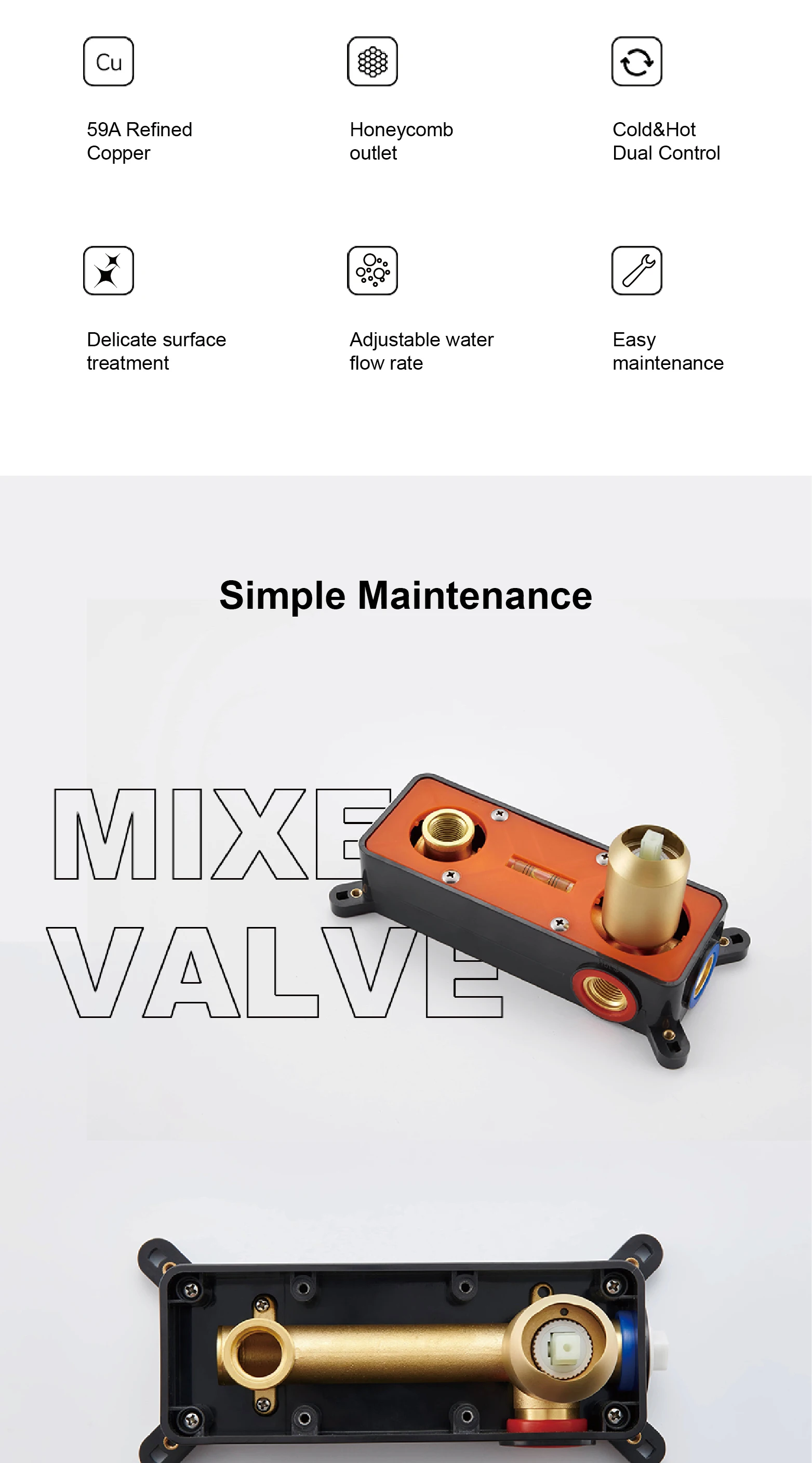 • Mécanisme de valve en céramique assurant un contrôle précis de l'eau chaude et froide