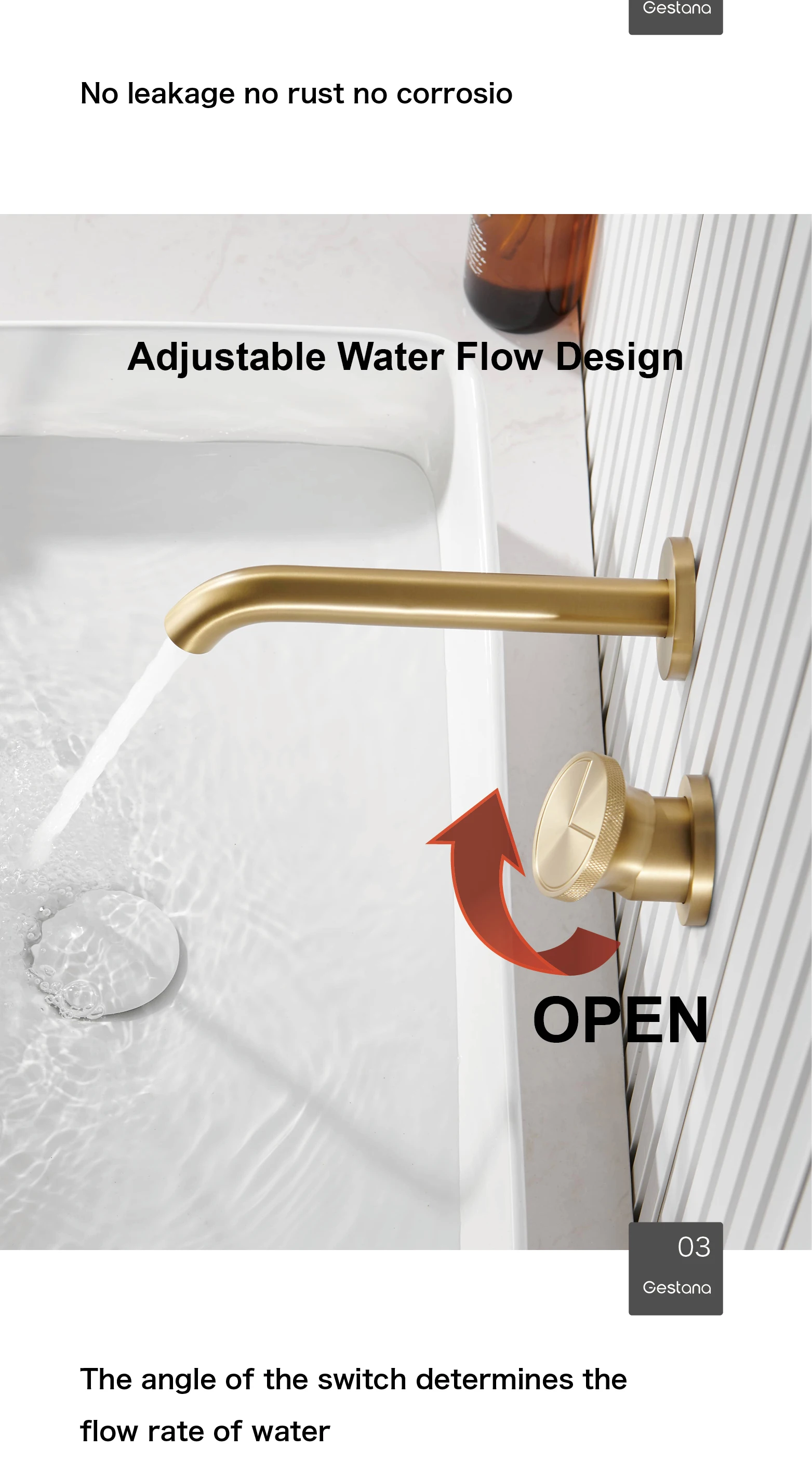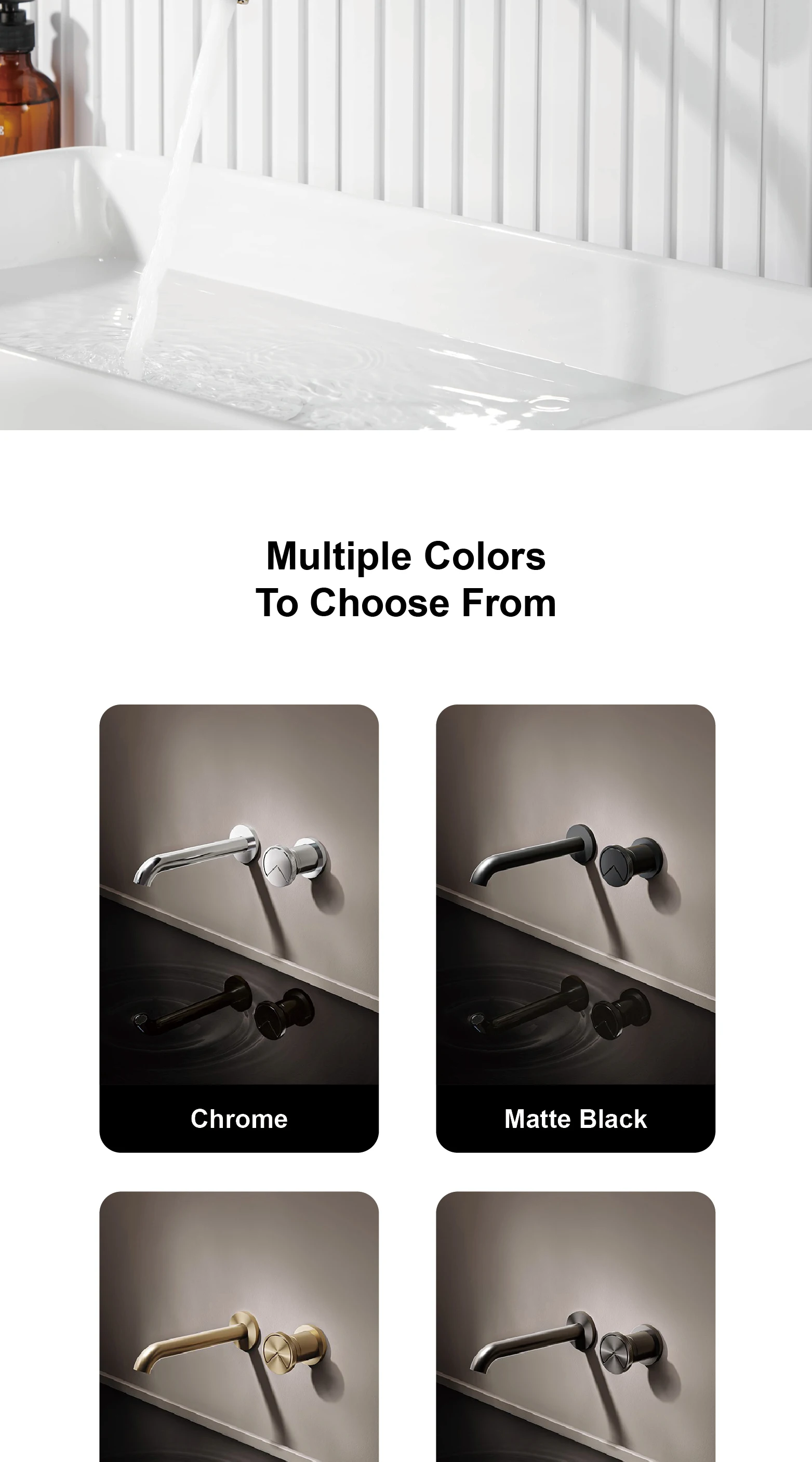 Soyez le premier à laisser votre avis sur “Robinet de lavabo de salle de bains mural en laiton brossé de luxe, moderne, poignée unique, réglage du débit/conception de robinet de vanité d’eau chaude et froide”