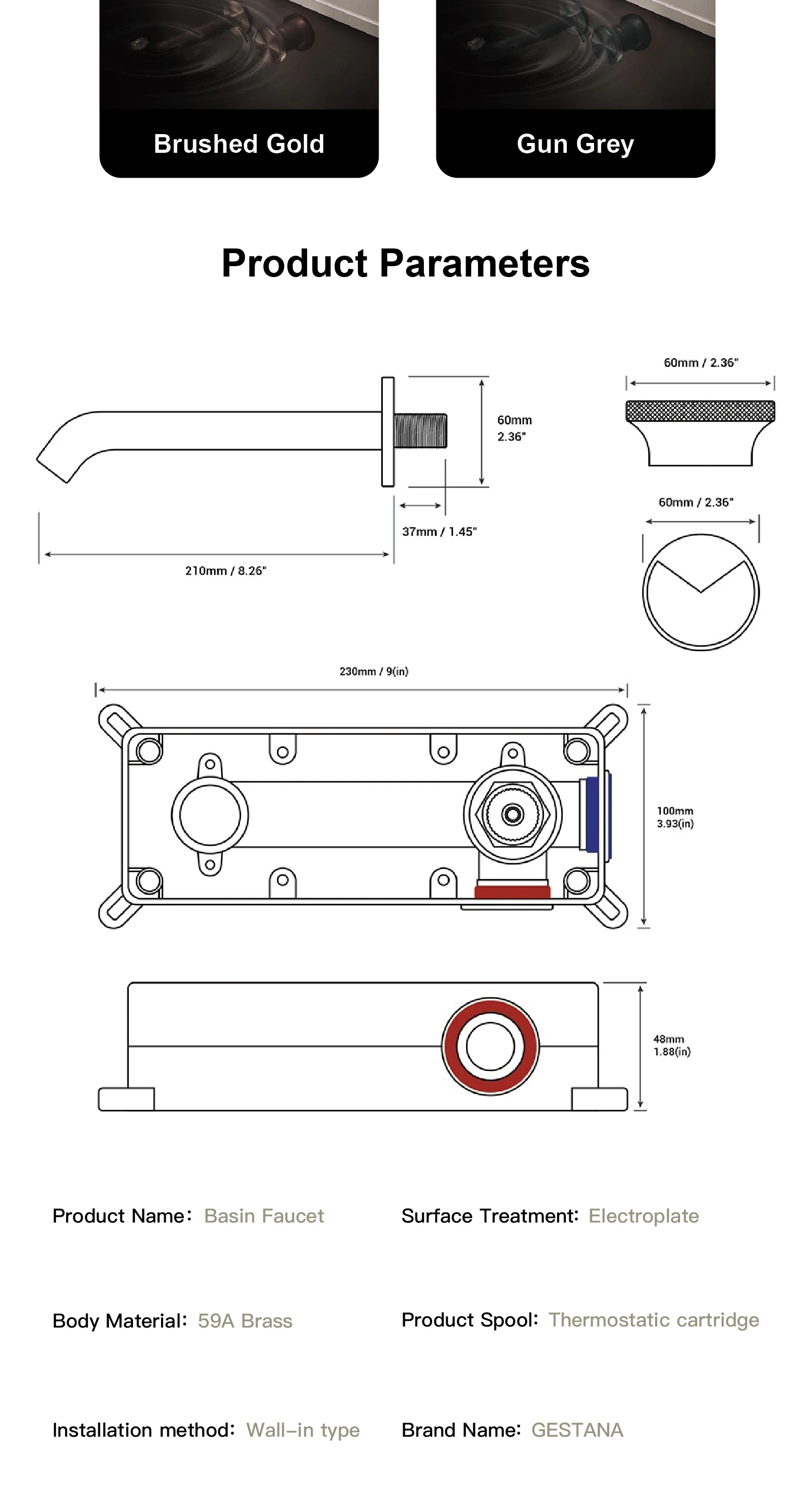 Soyez le premier à laisser votre avis sur “Robinet de lavabo de salle de bains mural en laiton brossé de luxe, moderne, poignée unique, réglage du débit/conception de robinet de vanité d’eau chaude et froide”