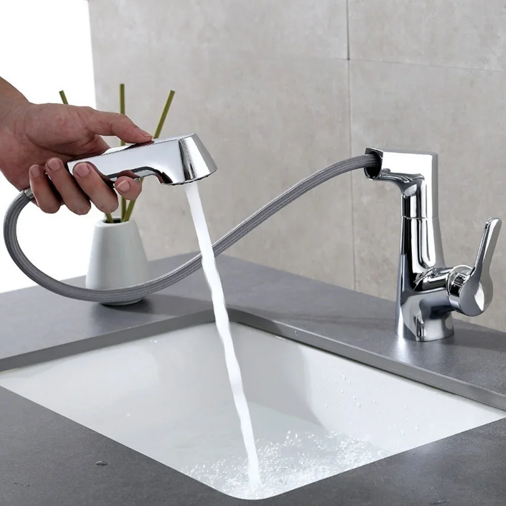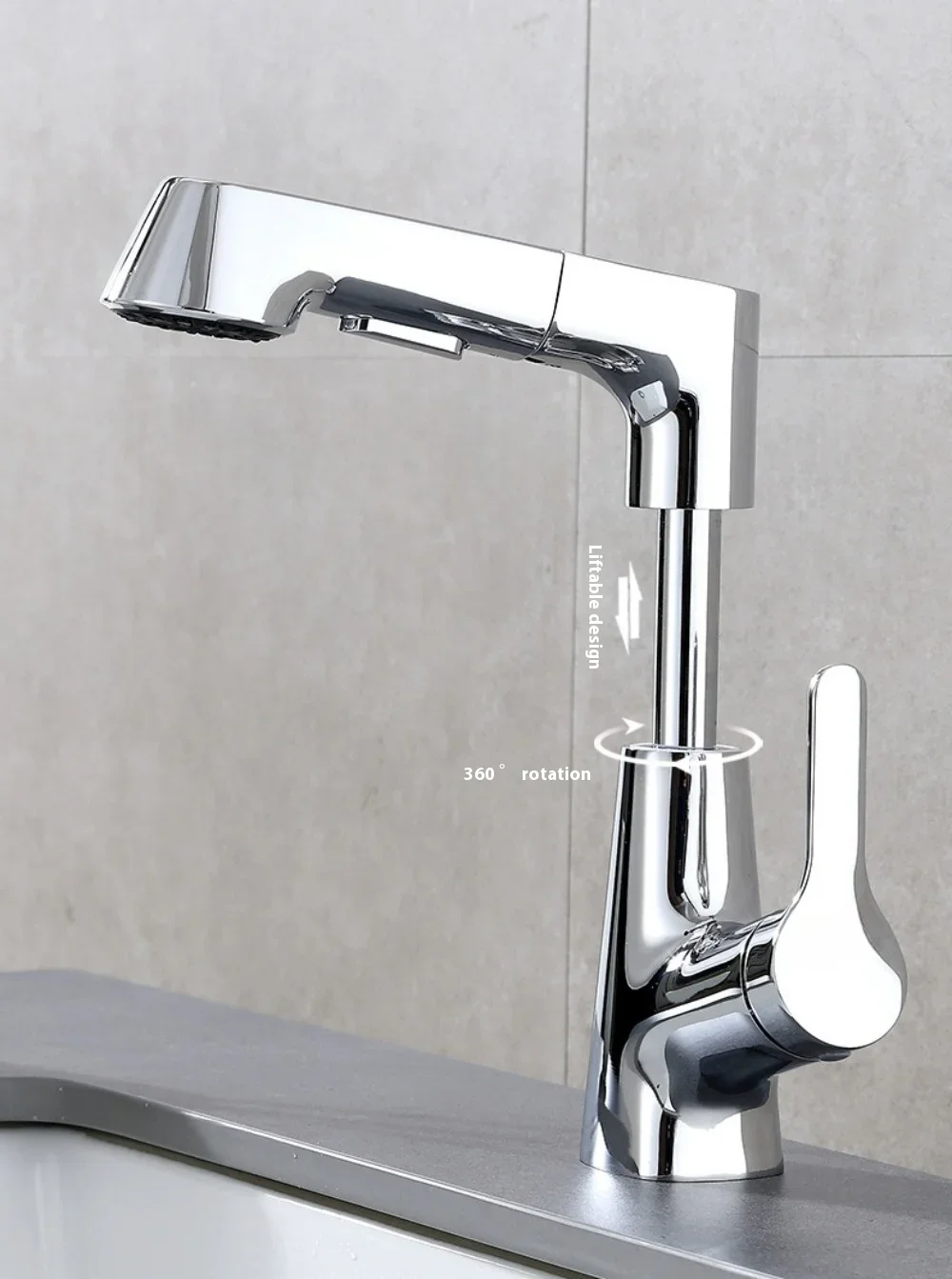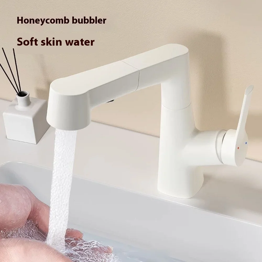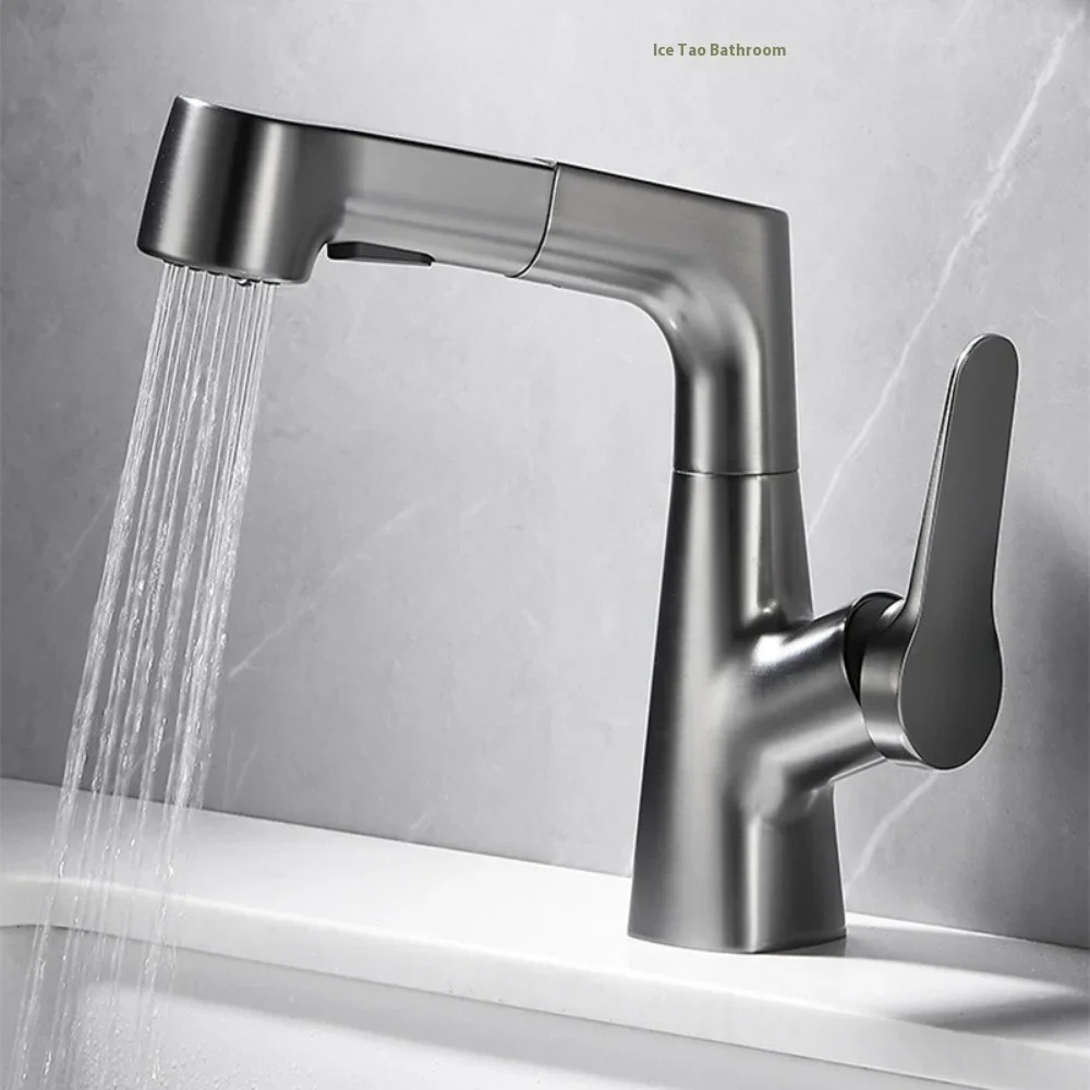 Robinet de lavabo de salle de bain relevable rétractable avec contrôle chaud/froid