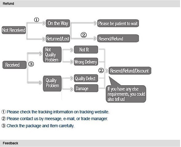 2. S’il vous plaît nous contacter avant de laisser une évaluation neutre (3 étoiles) ou négative (1-2 étoiles). Nous ferons de notre mieux pour résoudre les problèmes et s’il vous plaît nous faire confiance!