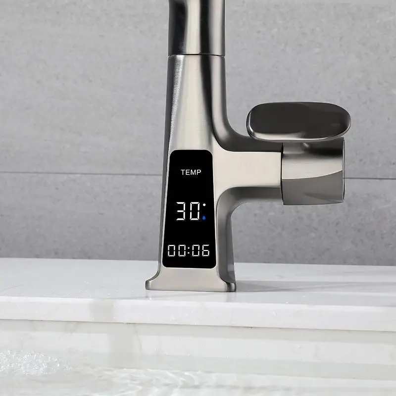 Robinet de lavabo en laiton extractible, robinets d’évier, fonction d’affichage numérique LED, robinets de salle de bains, robinet d’évier de salle de bains pour le lavageRobinet de lavabo en laiton extractible, robinets d’évier, fonction d’affichage numérique LED, robinets de salle de bains, robinet d’évier de salle de bains pour le lavage