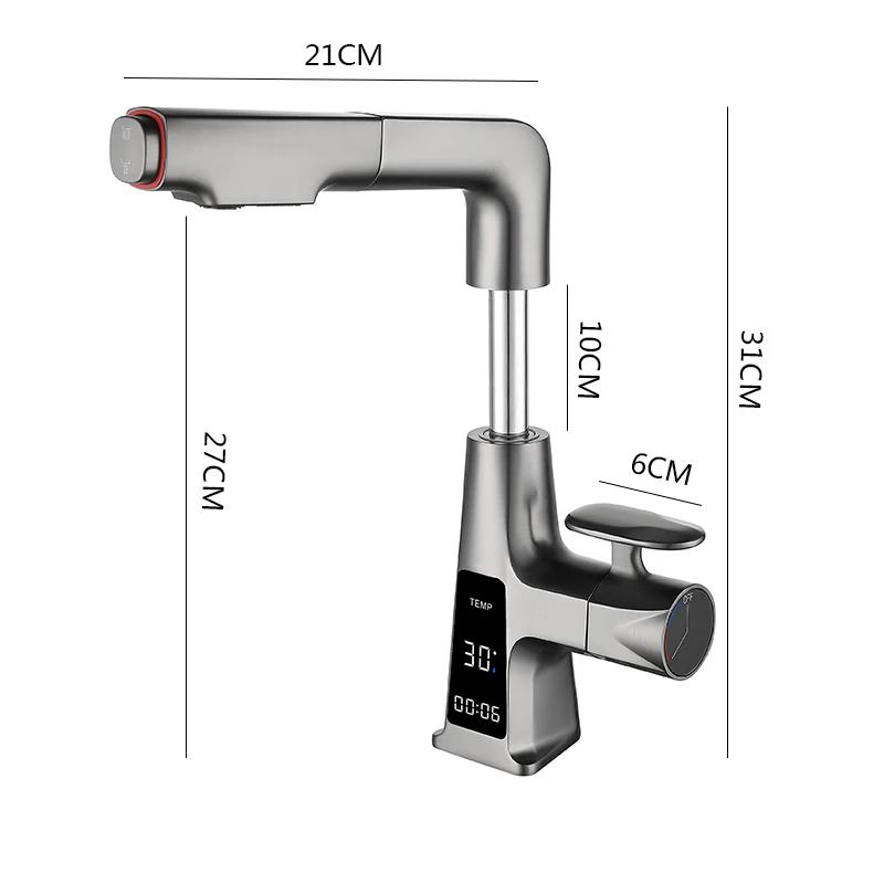 Robinet de lavabo en laiton extractible, robinets d’évier, fonction d’affichage numérique LED, robinets de salle de bains, robinet d’évier de salle de bains pour le lavageRobinet de lavabo en laiton extractible, robinets d’évier, fonction d’affichage numérique LED, robinets de salle de bains, robinet d’évier de salle de bains pour le lavage