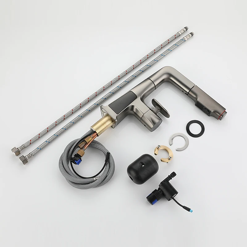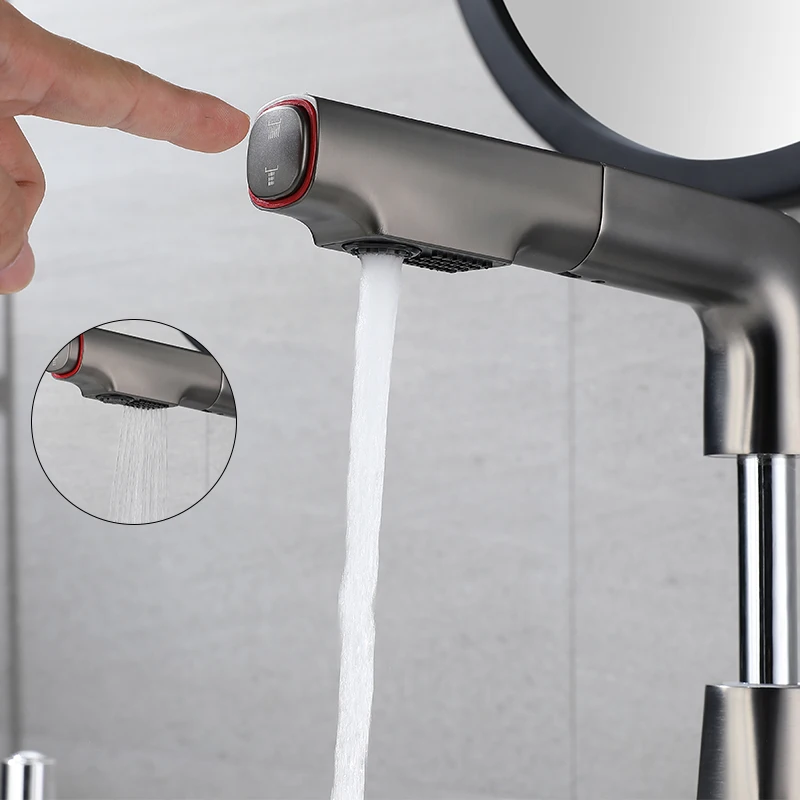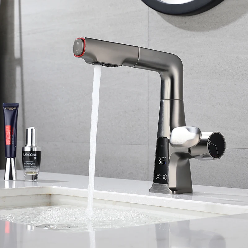 Robinet de lavabo en laiton extractible, robinets d'évier, fonction d'affichage numérique LED, robinets de salle de bains, robinet d'évier de salle de bains pour le lavage