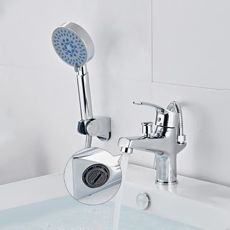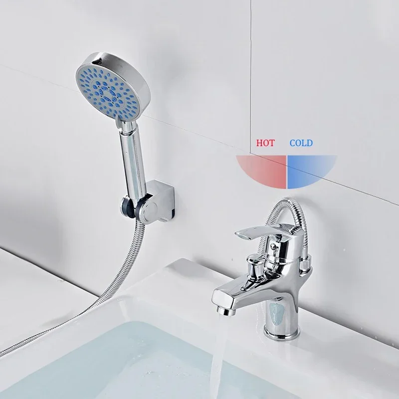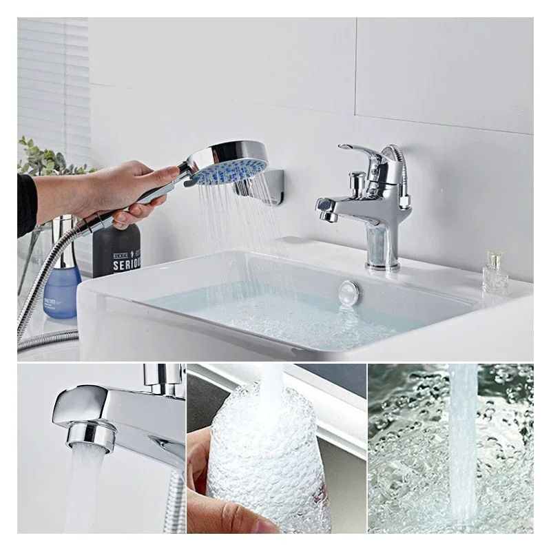 Ensemble de robinets de lavabo, baignoire de salle de bains, douche, avec pomme de douche à main, buse de mélange d’eau chaude et froide montée sur le pont