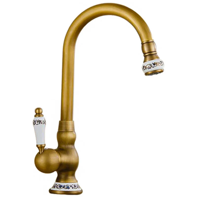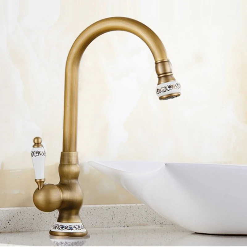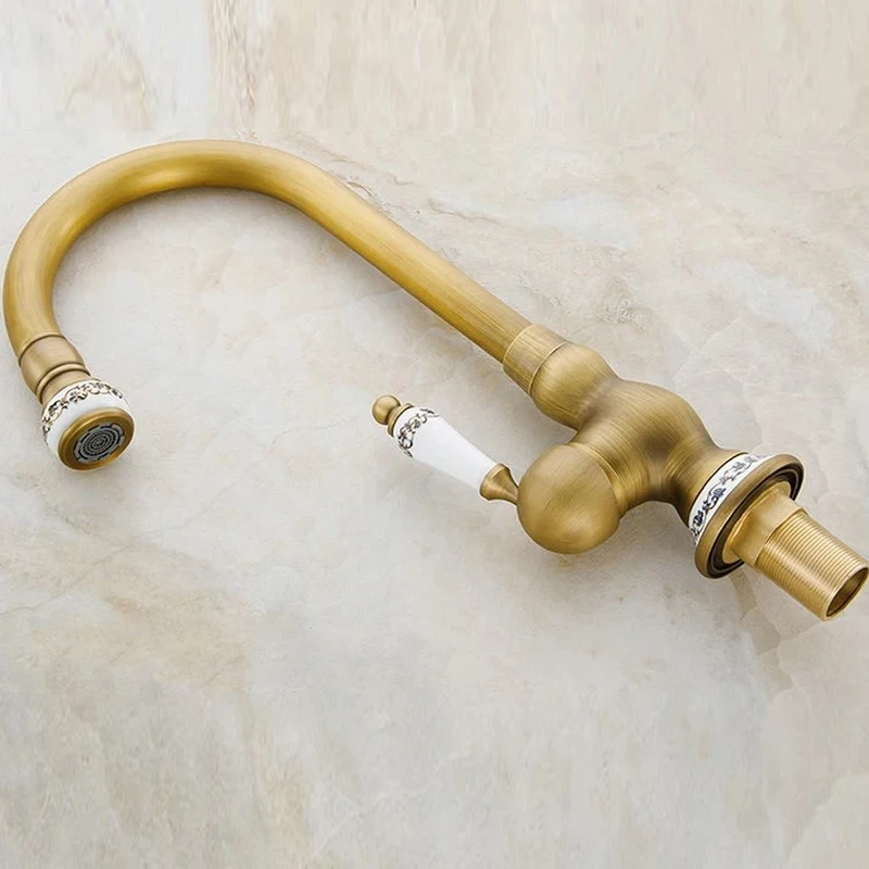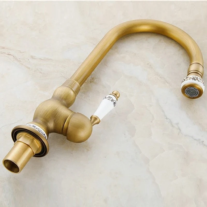 Robinet de lavabo en laiton Vintage à poignée unique – Robinet mitigeur d’évier de salle de bain pour une installation à 1 trou, robinet d’eau chaude et froide antique