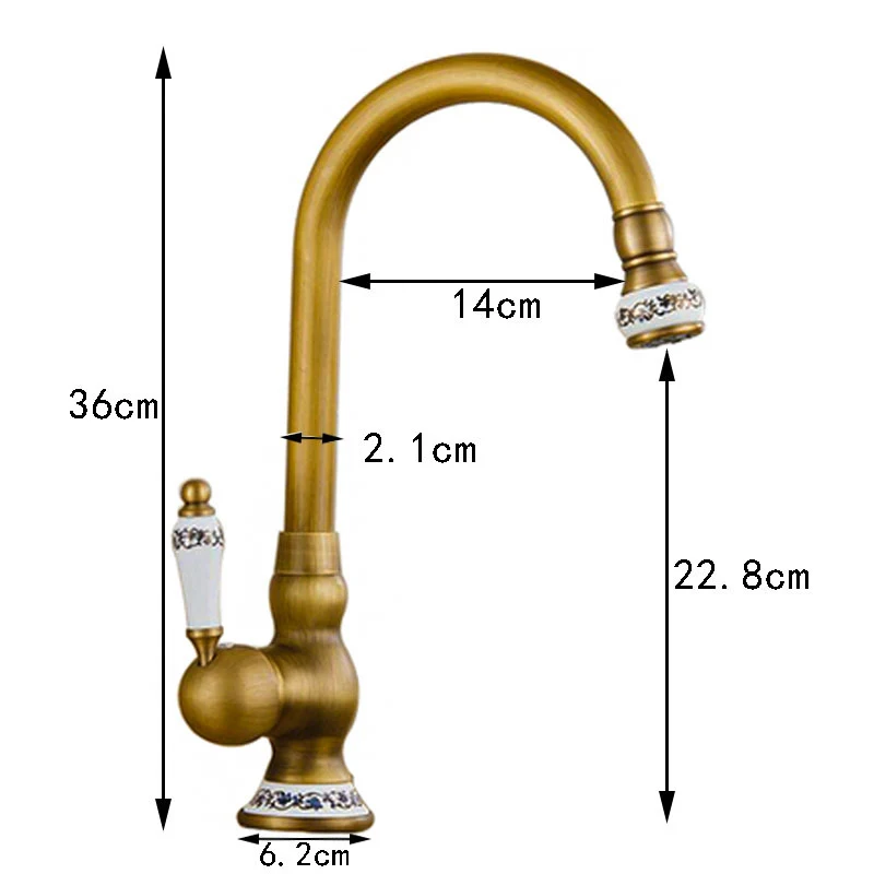 Robinet de lavabo en laiton vintage à poignée unique – Robinet mitigeur d’évier de salle de bain pour installation à 1 trou, robinet d’eau chaude et froide antique