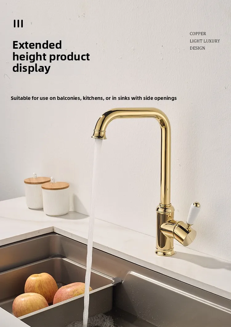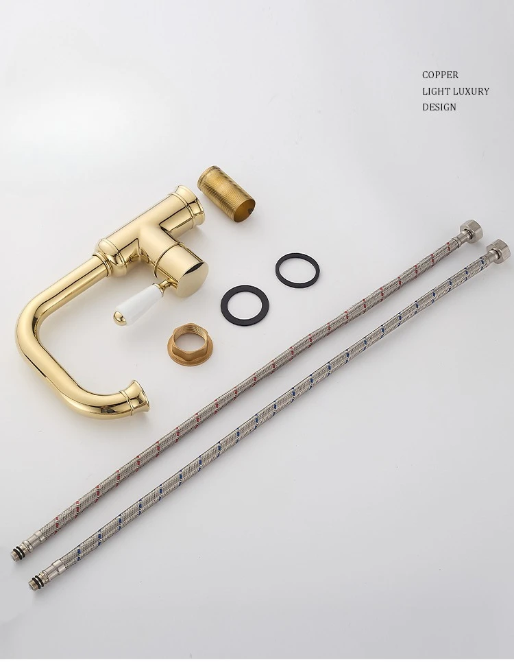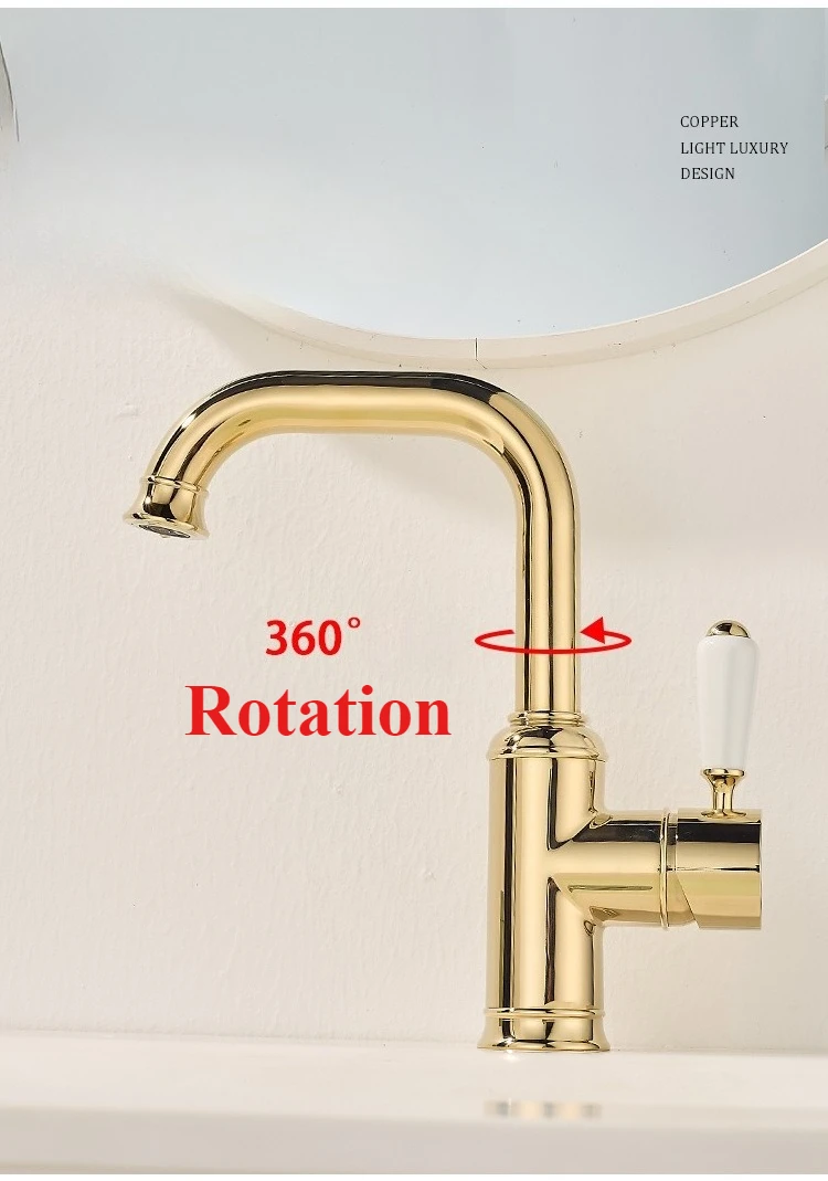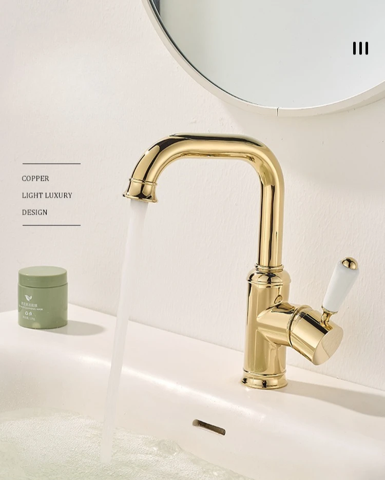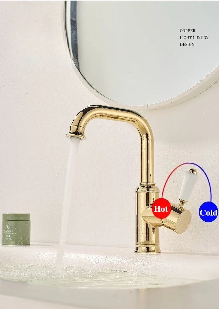 Robinet de lavabo en laiton Vintage de luxe, robinet d'évier de salle de bains à trou unique pour usage domestique, robinet d'eau chaude et froide de cuisine |