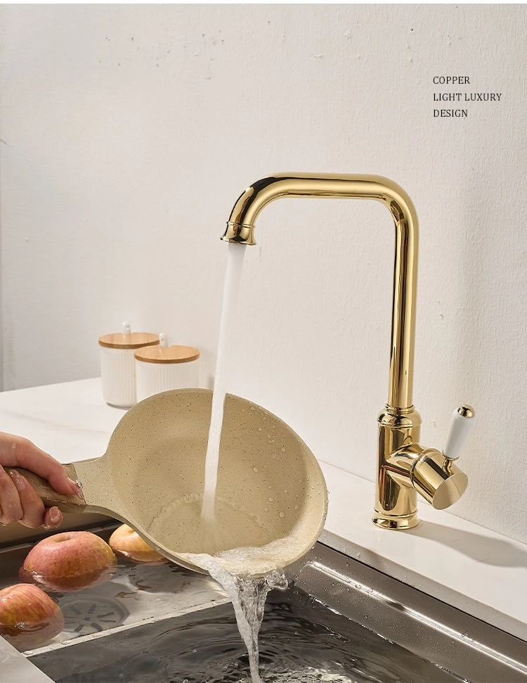 Robinet de lavabo en laiton Vintage de luxe, robinet d'évier de salle de bains à trou unique pour usage domestique, robinet d'eau chaude et froide de cuisine |