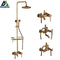 Ensemble de douche mural en laiton antique robinet mitigeur avec douchette + étagère mitigeur de douche de salle de bain