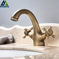 Robinet de lavabo à double poignée Robinet de lavabo chaud et froid en laiton monté sur le pont Robinet de salle de bain en laiton antique