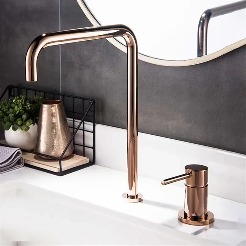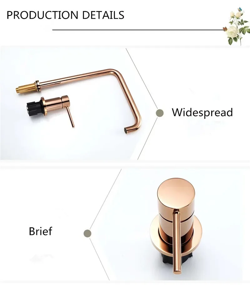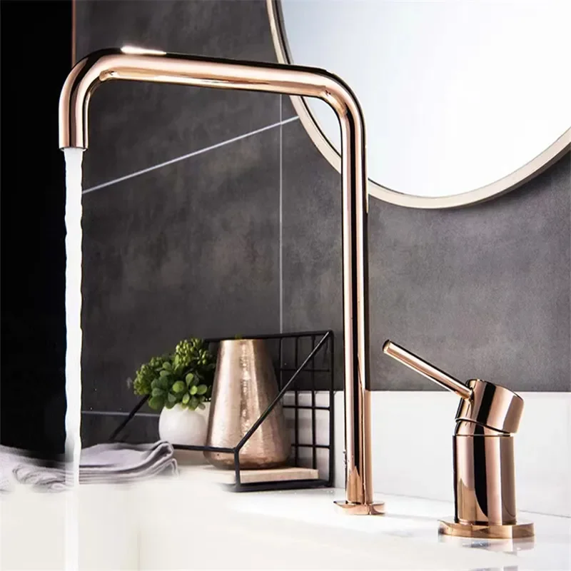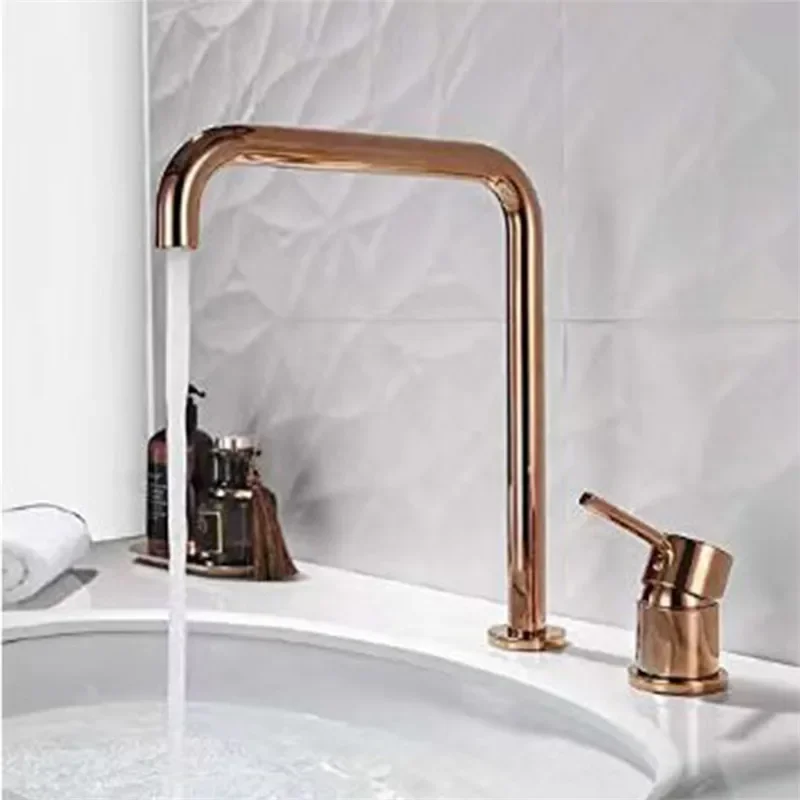 Tuqiu Rose Gold robinet de lavabo salle de bains deux trous généralisé robinet de lavabo de salle de bain 360 rotatif généralisé robinet de lavabo noir